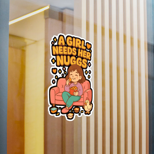 A Girl Needs Her Nuggs - Chicken Nugget Sticker for Laptop, Water Bottle, Funny Gift for Women, Chicken Lover, Foodie Decor