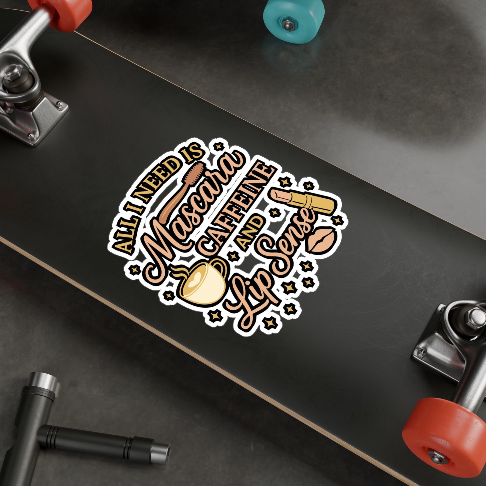 All I Need Is Mascara, Caffeine And Lip Sense - Mascara Sticker for Laptop, Water Bottle - Makeup Lover Gift for Women & Teens