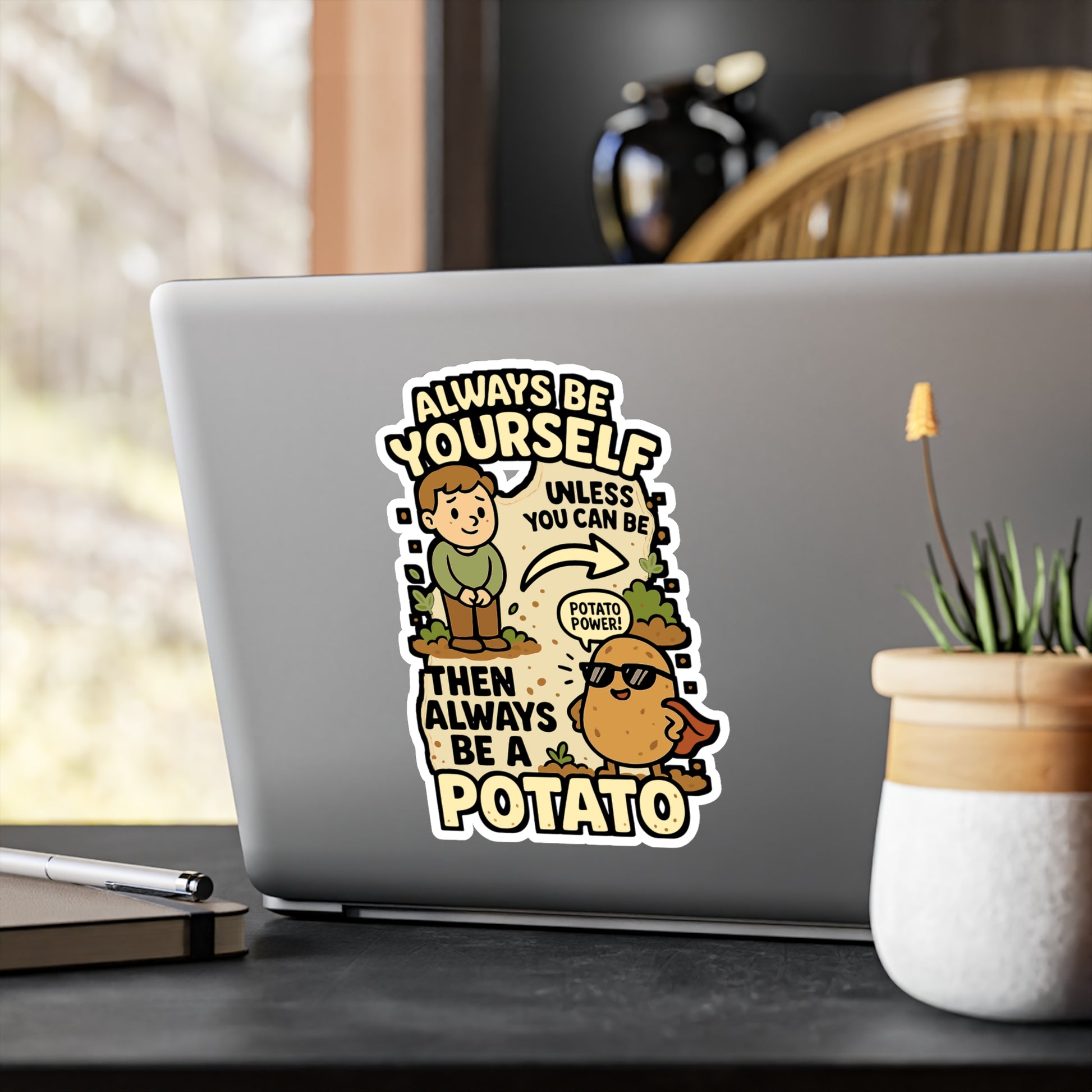 Always Be Yourself Unless You Can Be A Potato Then Always Be A Potato - Potato Sticker for Laptop, Water Bottle, Funny Gift for Friends & Veggie Lovers | Potato Sticker | Vegan Decals | Potato Gift