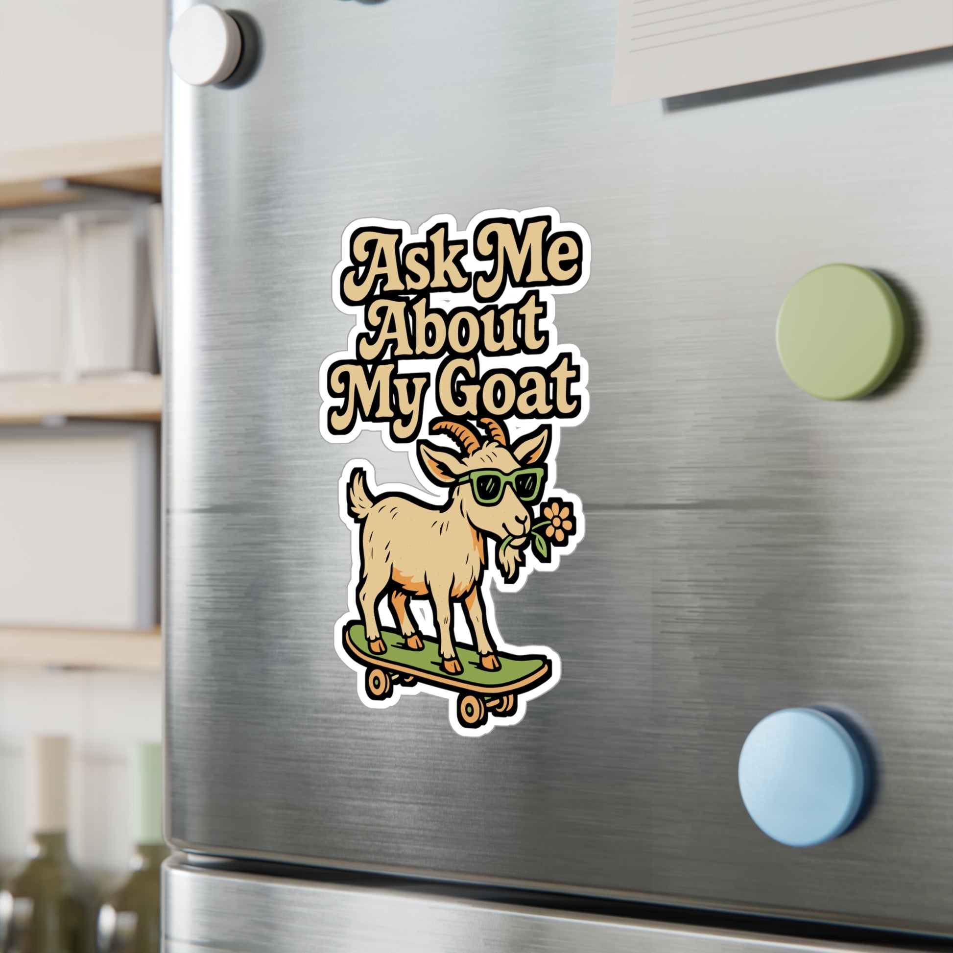 Ask Me About My Goat – Funny Vinyl Sticker for Car, Laptop, or Water Bottle | Butthead Decal & Alpine Goat Gift