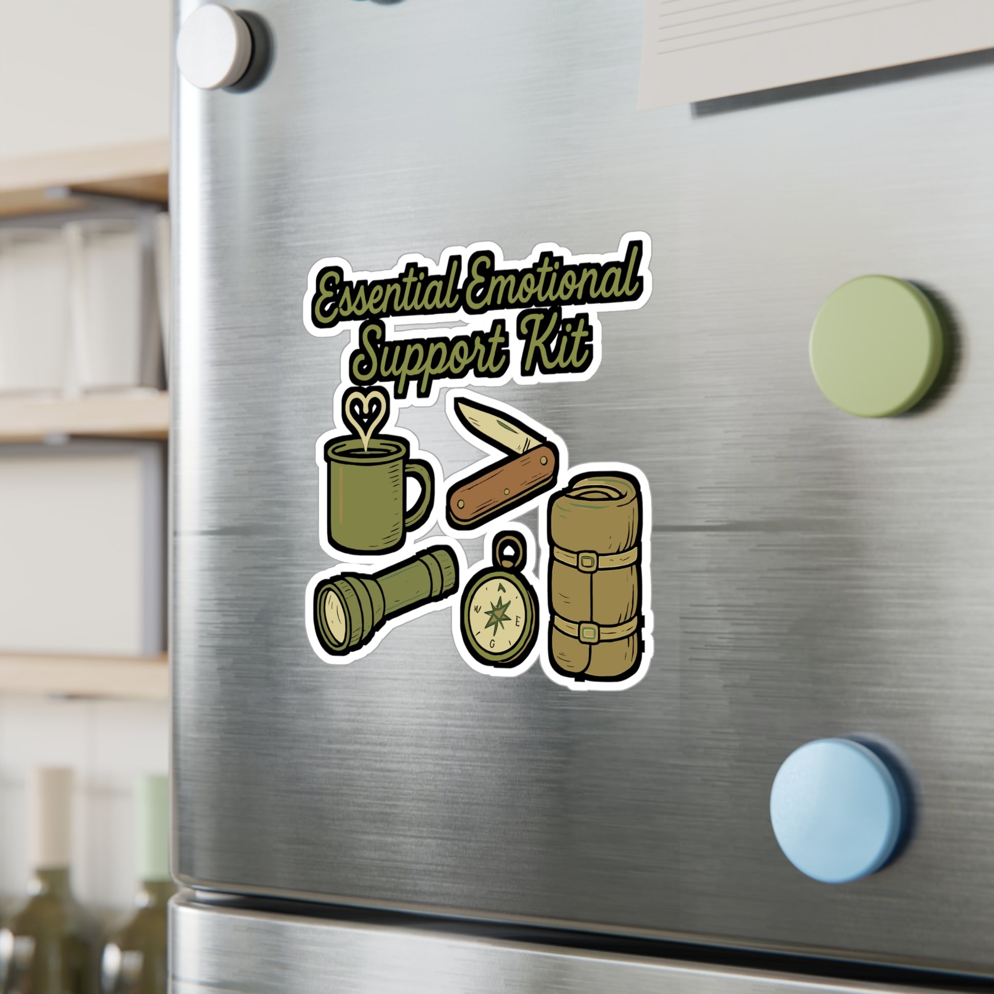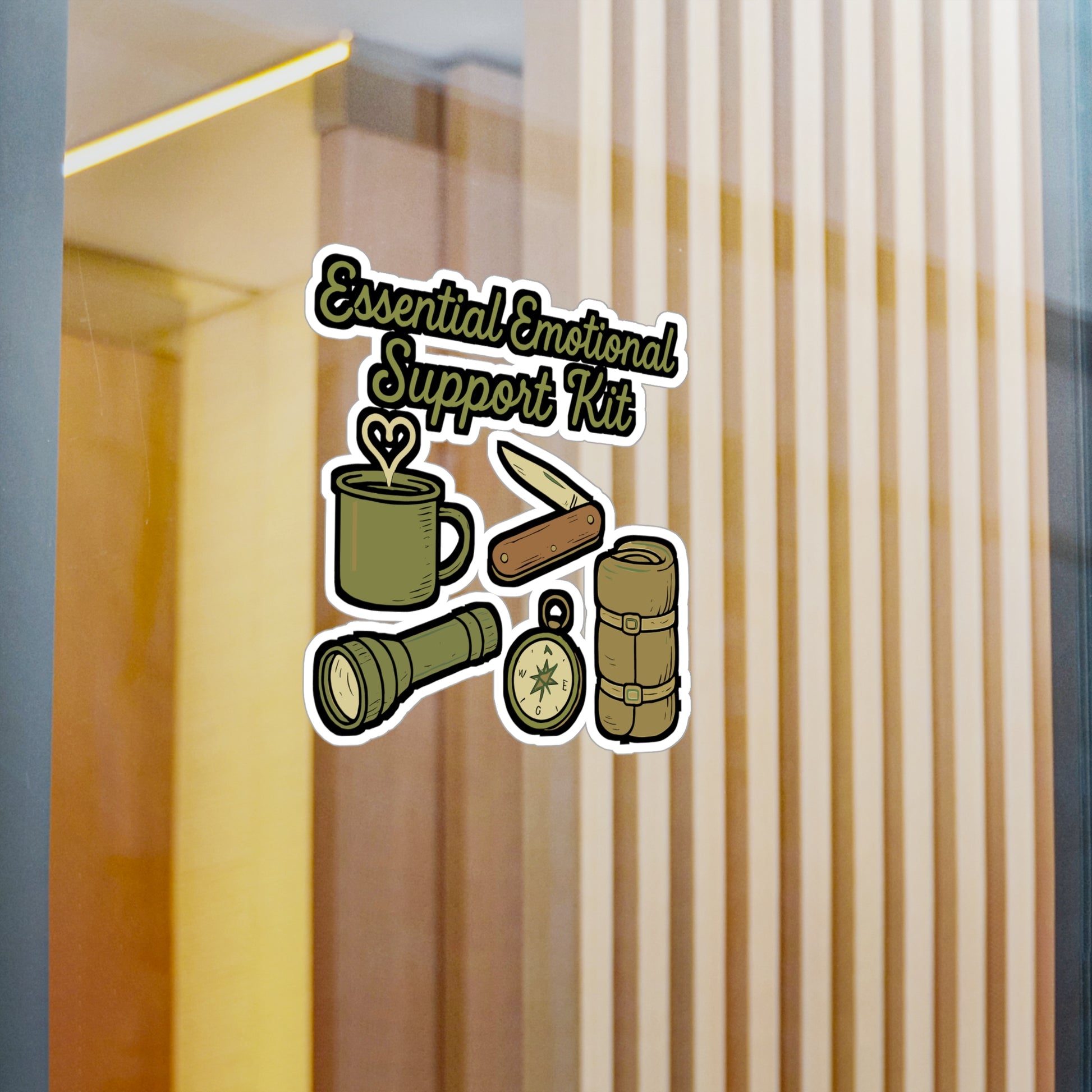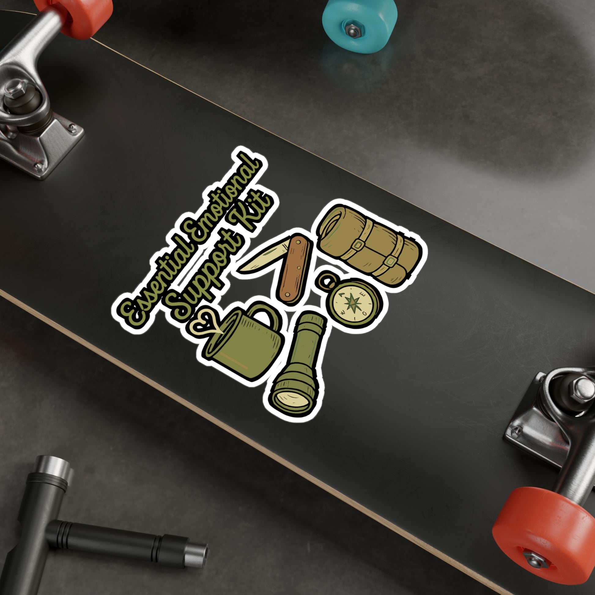 Camping Sticker – Essential Emotional Support Kit Decals for Outdoors, Wilderness & Survival – Waterproof Vinyl for Laptop, Water Bottle