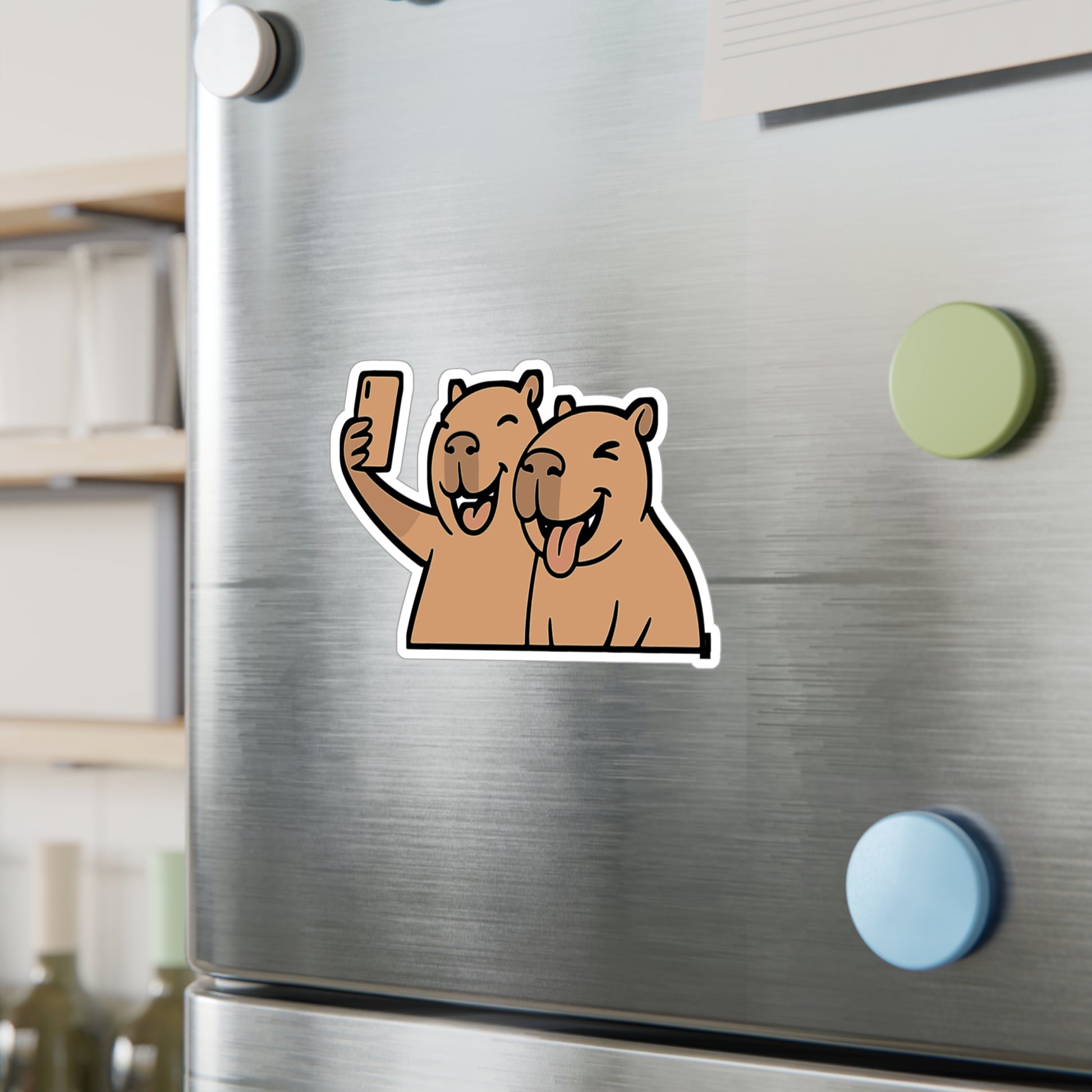 Capybara Sticker – Cute Capybara Selfie Decals for Laptops & Water Bottles, Friendship Smiling Vinyl, Waterproof Design
