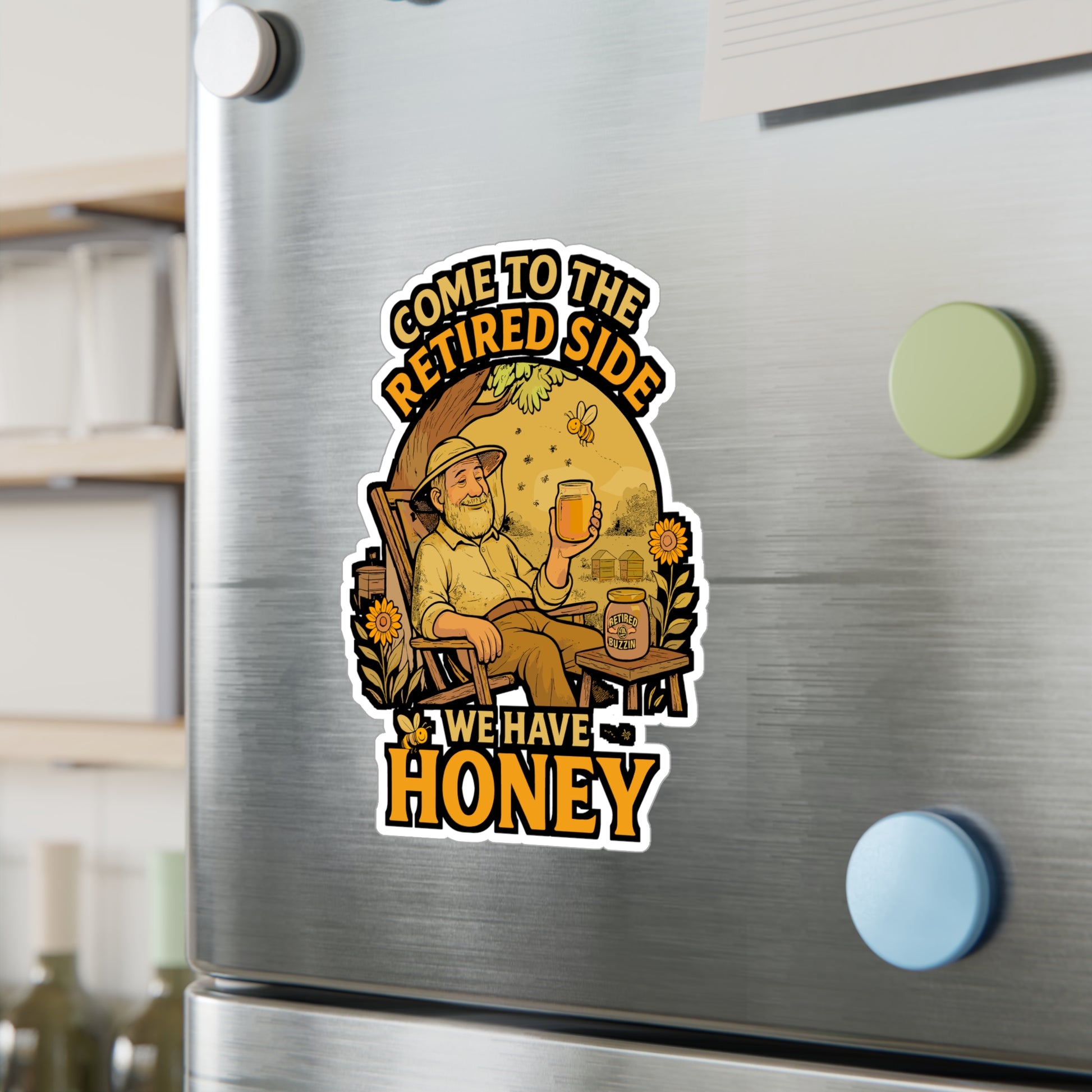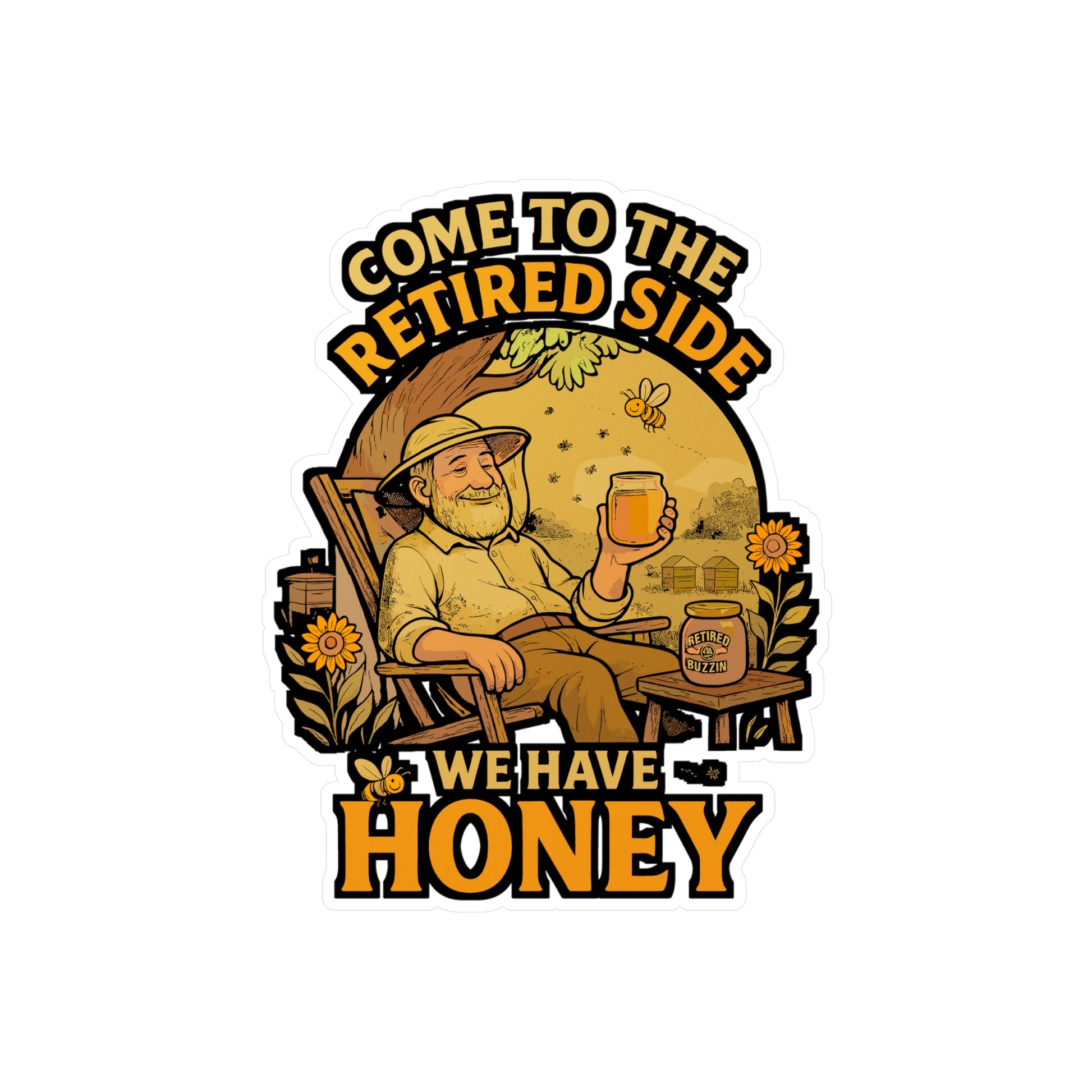 Come To The Retired Side We Have Honey - Beekeeping Sticker for Laptop Sticker. Water Bottle Sticker, Vinyl Brood Decal - Beekeeping Gift | Beekeeping Sticker | Brood Decals | Beekeeping Gift