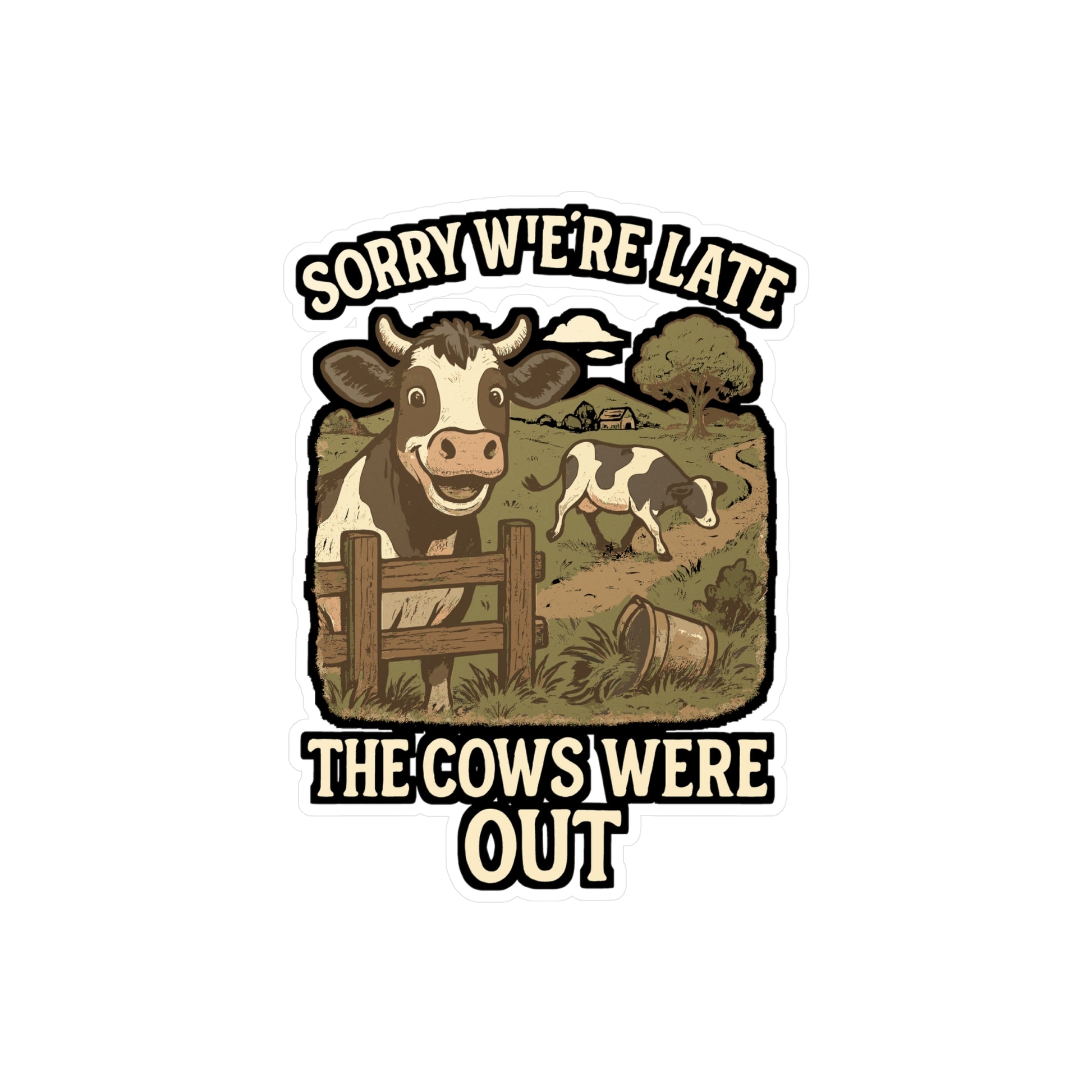 Cow Sticker – Sorry We're Late The Cows Were Out Funny Decals for Laptop, Water Bottle, Waterproof Vinyl Heifer Calf Bull Gift