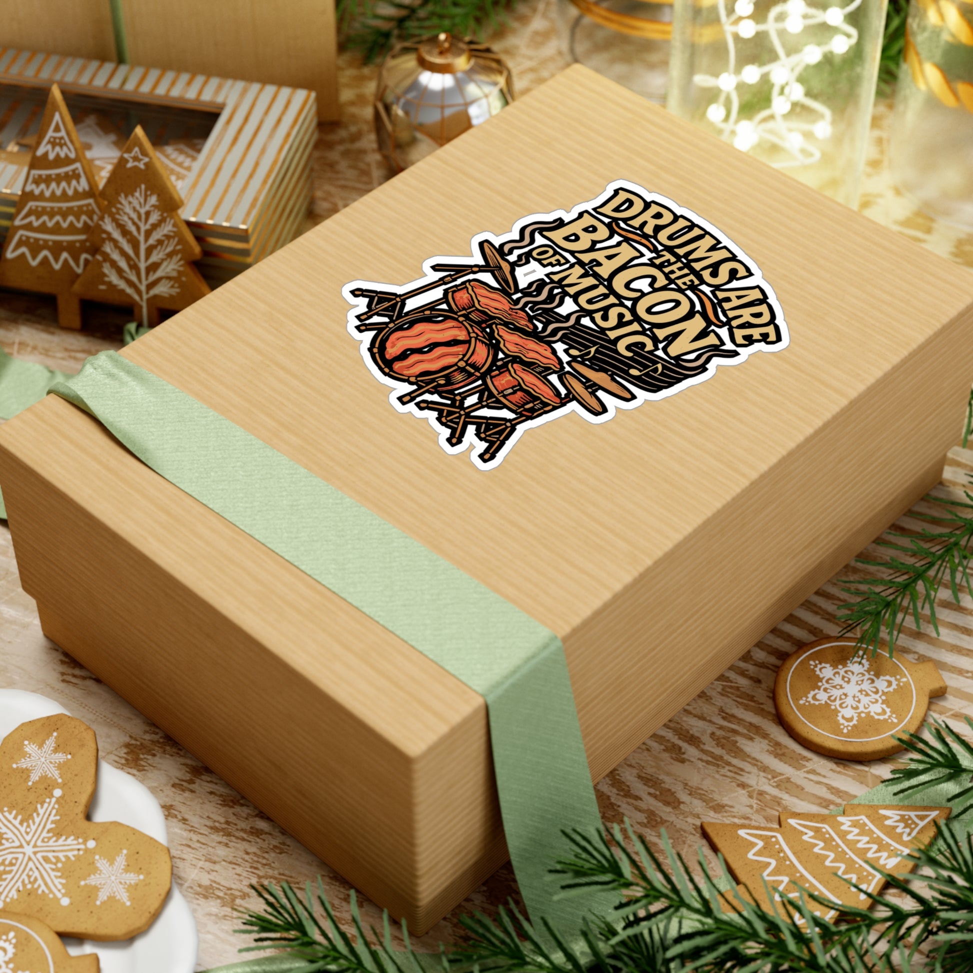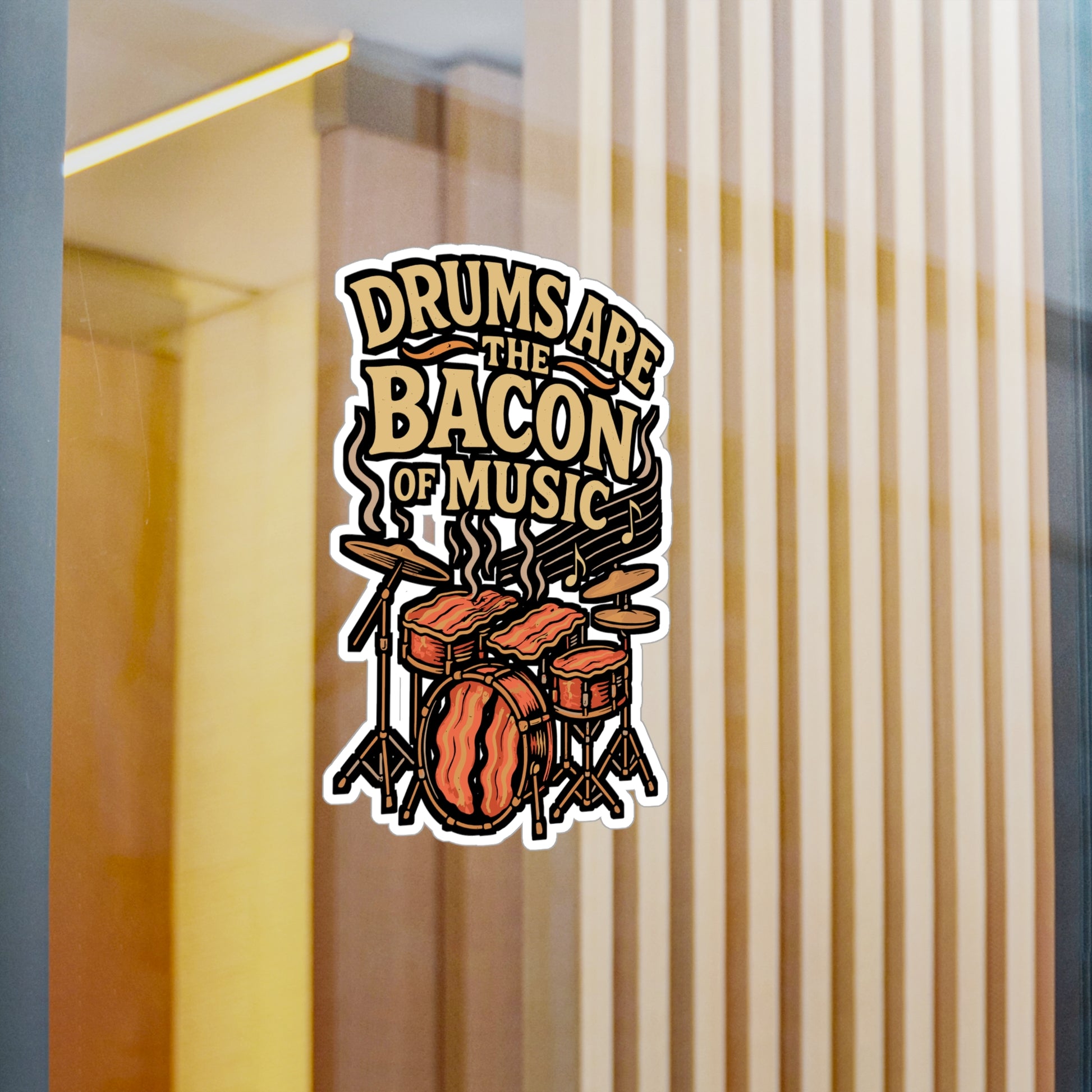 Drums Are The Bacon Of Music – Funny Drum Sticker for Laptop or Water Bottle | Vinyl Music Decal, Drummer Gift