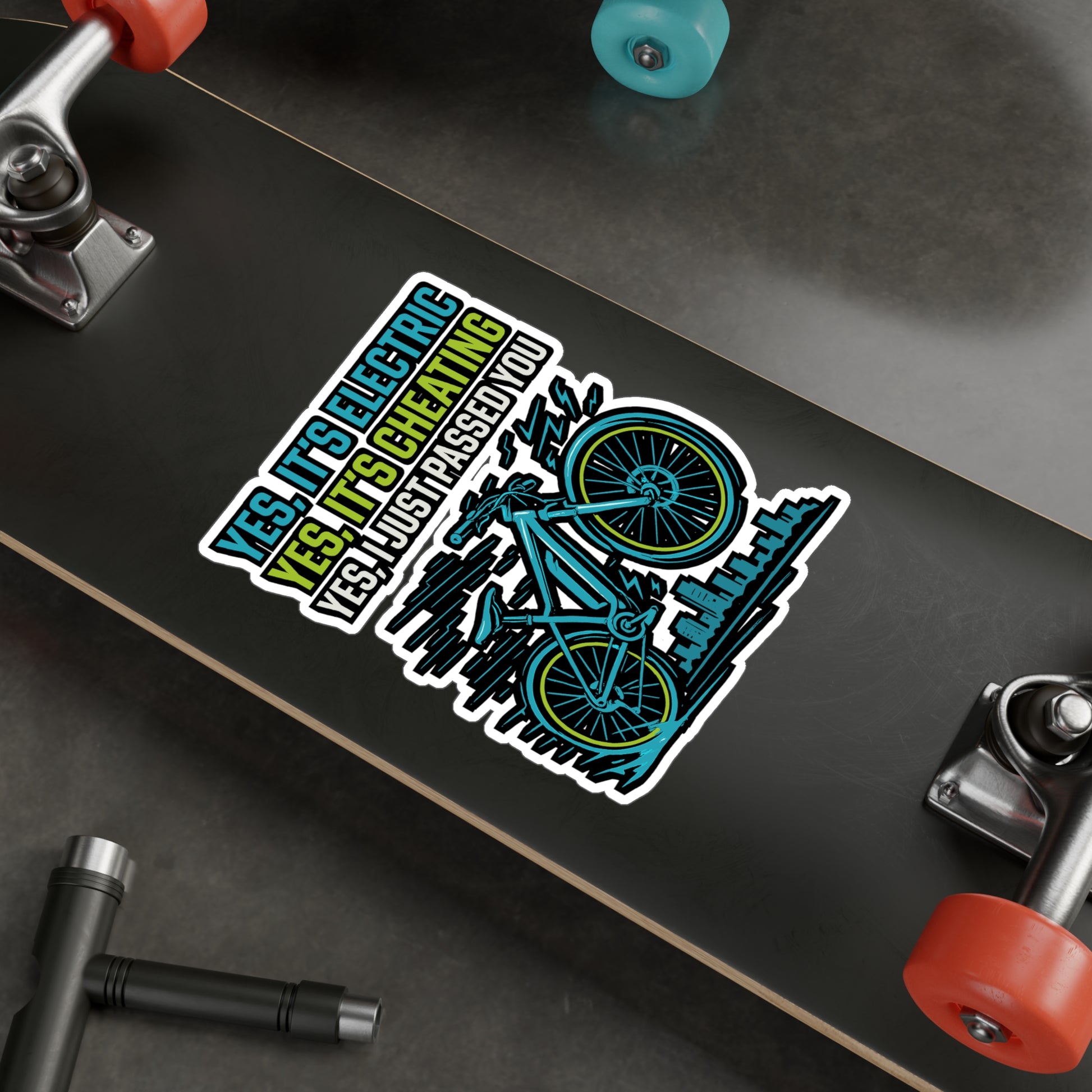 E Bike Sticker – "Yes It's Electric Yes It's Cheating Yes I Just Passed You" Funny Decals for Electric Bike, Ecycling, Waterproof Vinyl for Helmet or Water Bottle