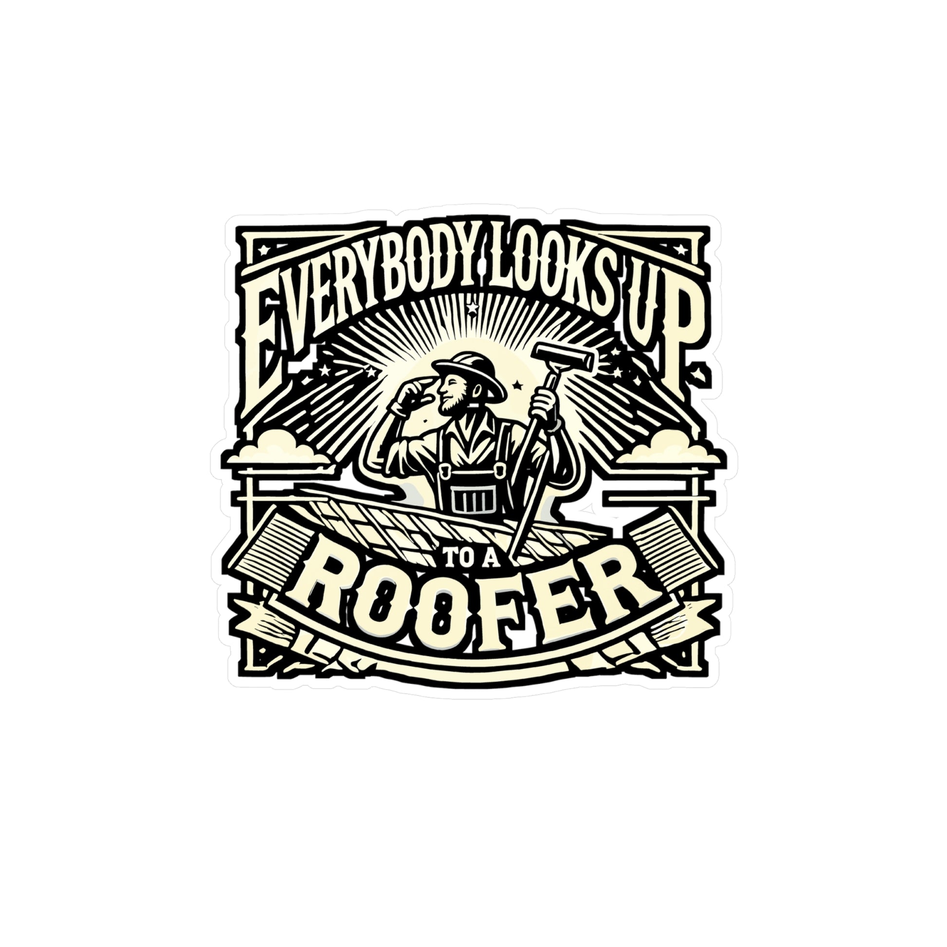 Everybody Looks Up To A Roofer – Vinyl Sticker for Laptop or Water Bottle | Roofing Humor Gift for Men