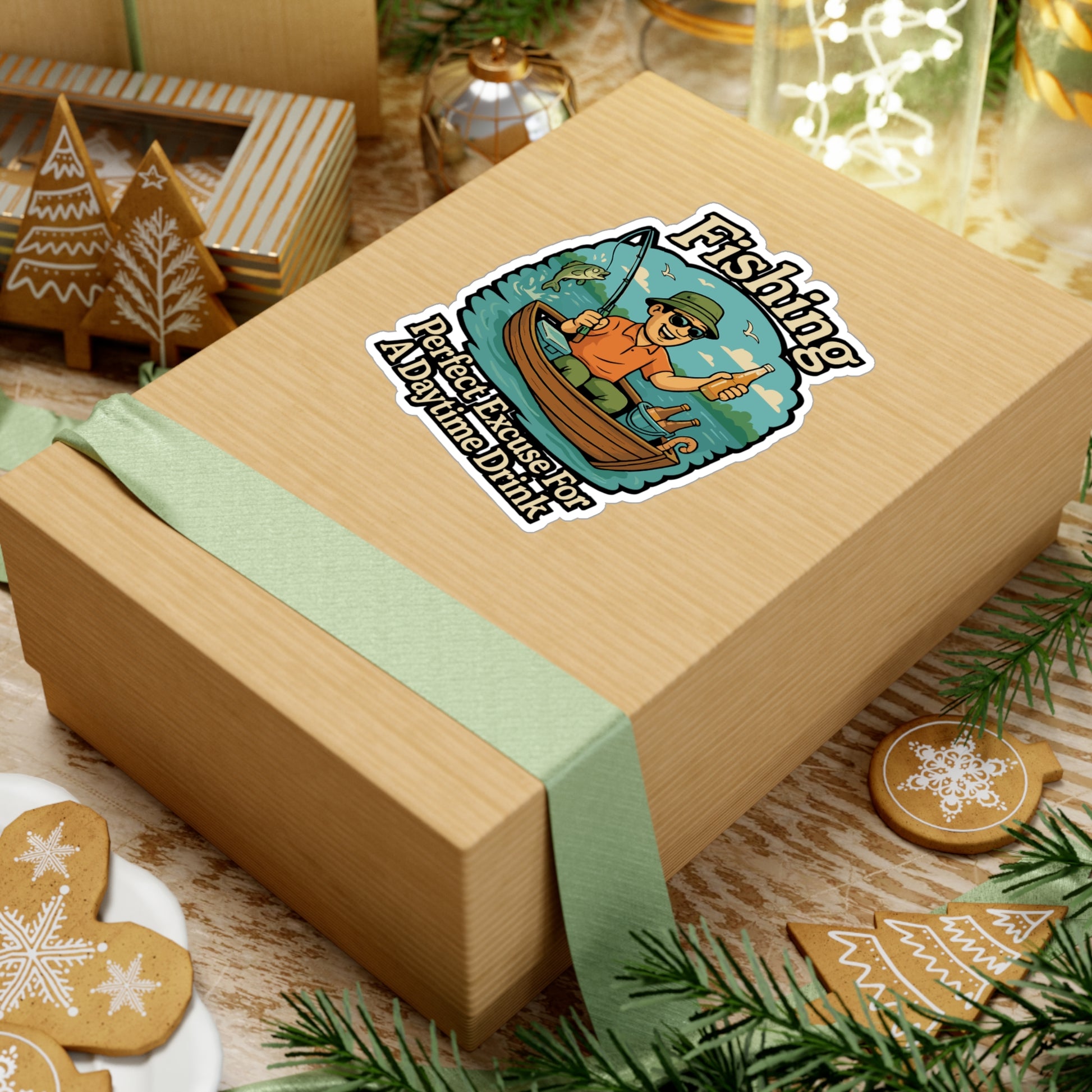 Fishing Sticker – Funny "Fishing – Perfect Excuse For A Daytime Drink" Cartoon Decal, Beer & Alcohol Design, Waterproof Vinyl for Laptop or Water Bottle | Fishing Sticker | Cartoon Decals | Fishing Gift