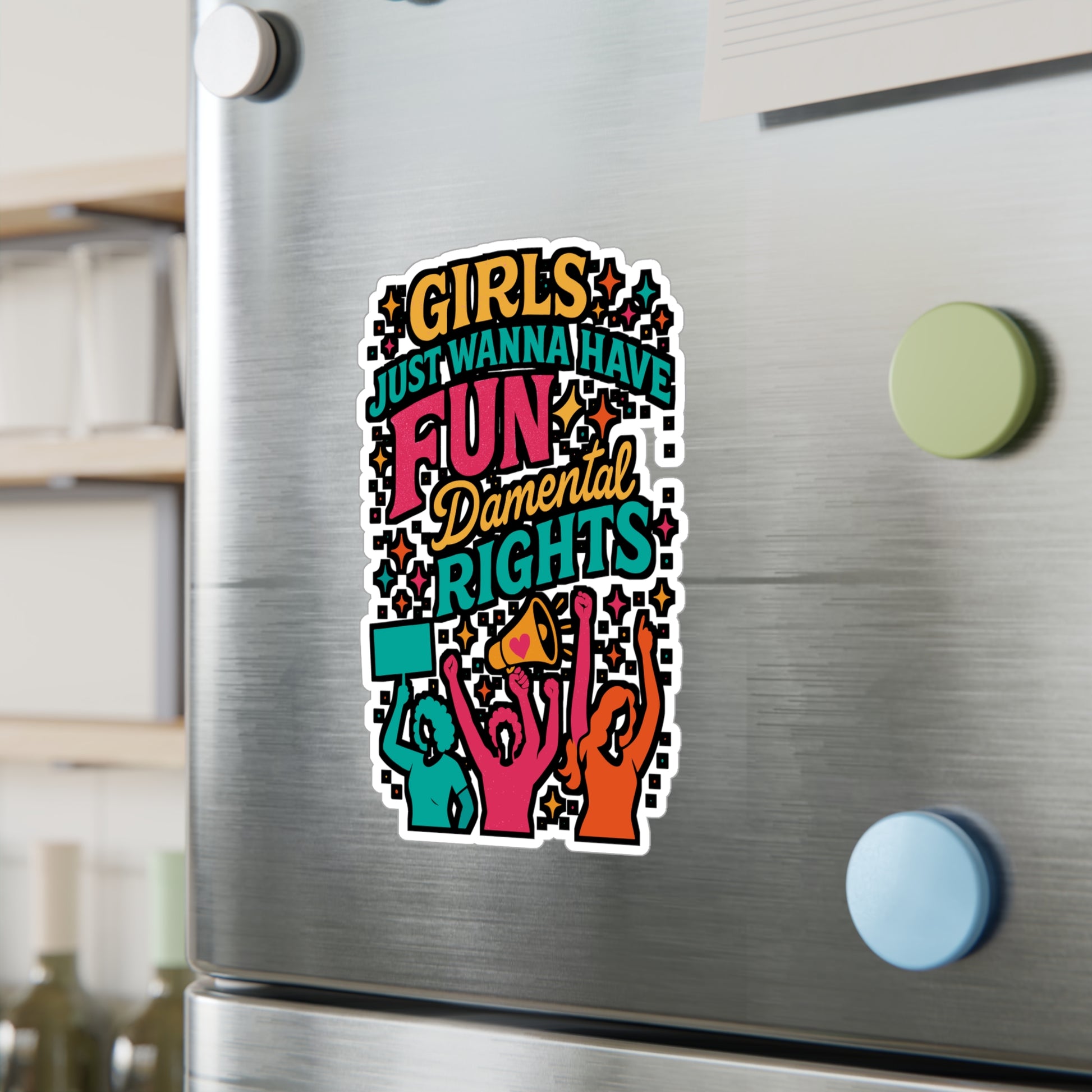 Girls Just Wanna Have FUNdamental Rights – Feminist Sticker for Laptop, Water Bottle & Empowerment Gifts