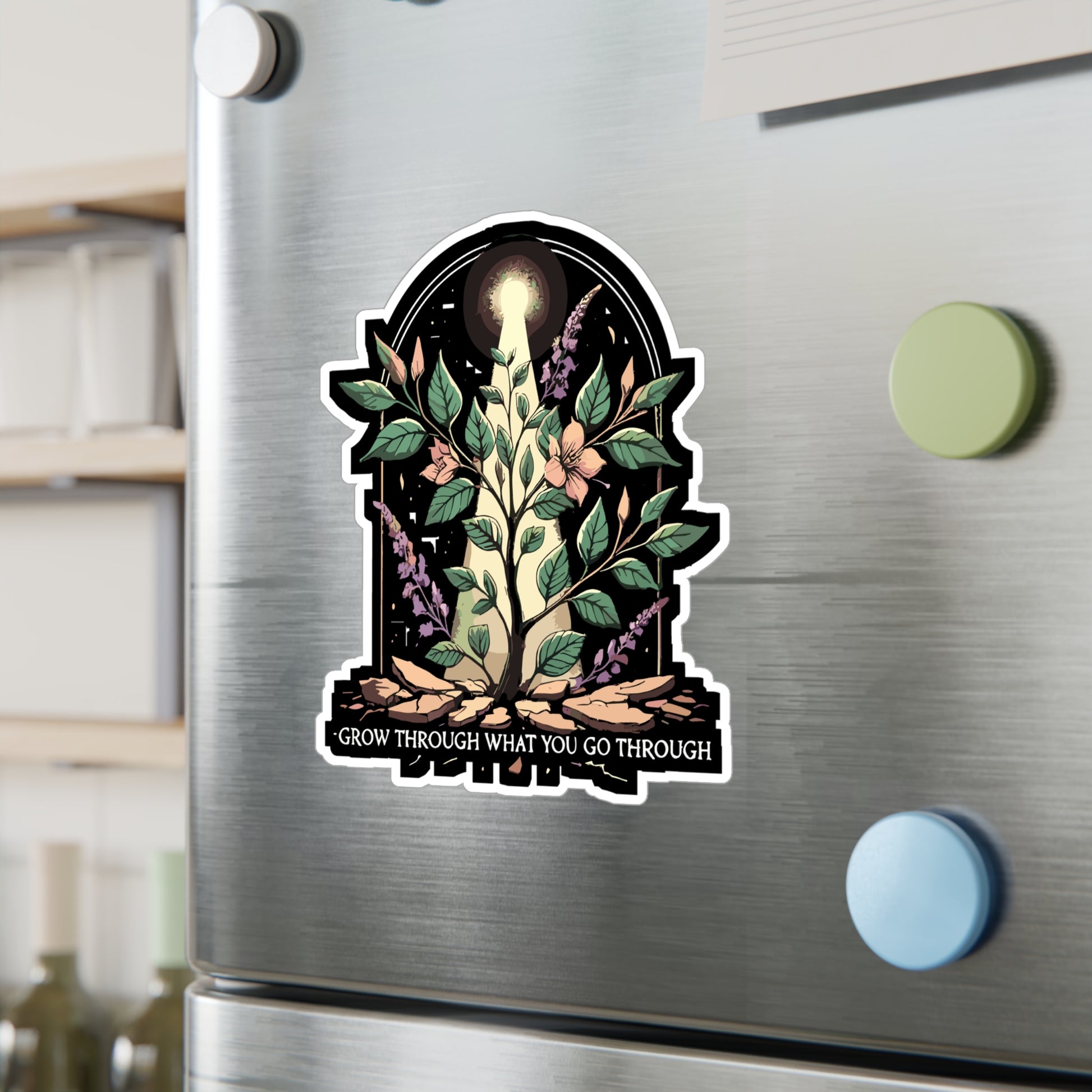 Grow Through What You Go Through - Growth Sticker for Laptop Sticker. Water Bottle Sticker, Vinyl Resilience Decal - Growth Gift