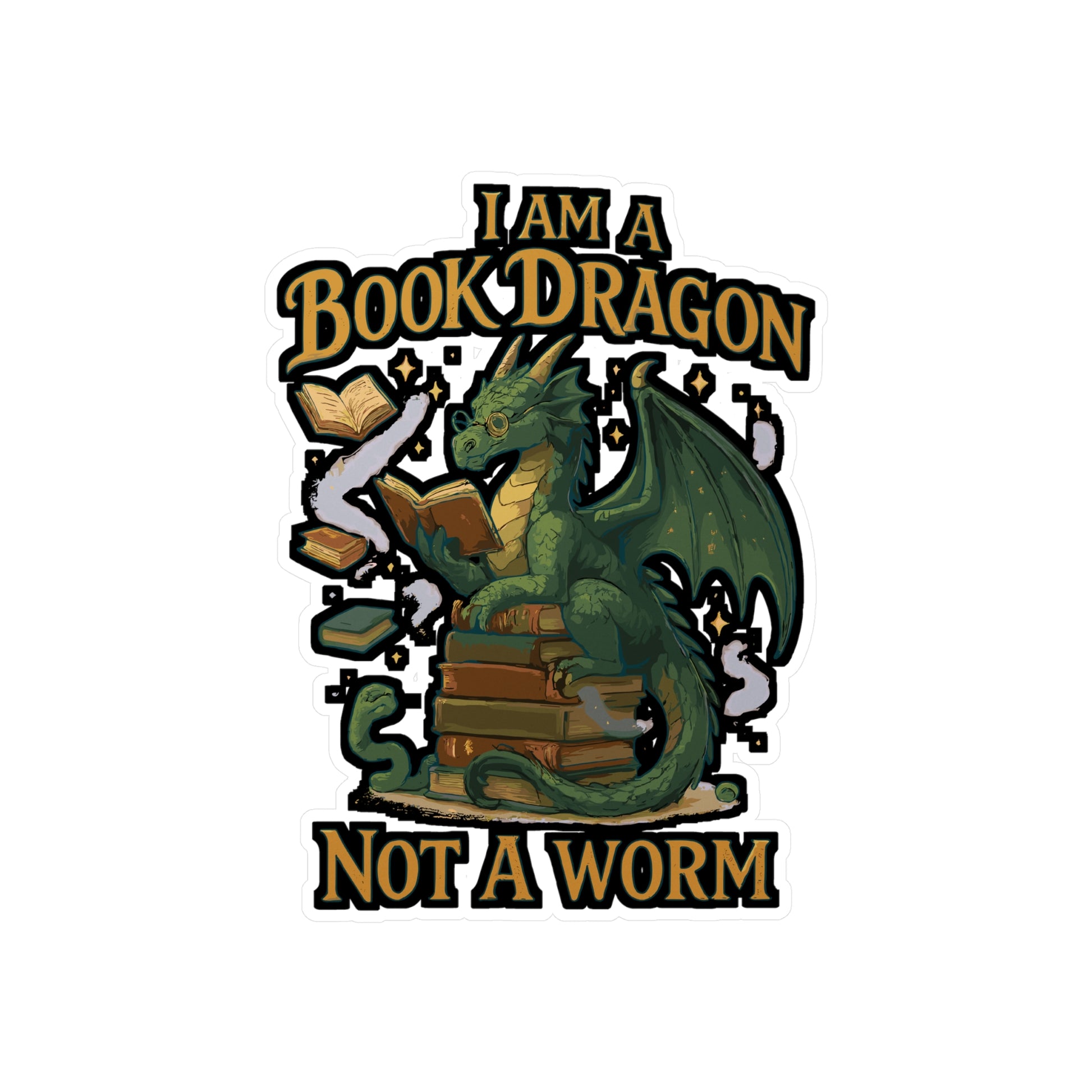 I Am A Book Dragon Not A Worm - Book Sticker for Laptop, Water Bottle, Readers Gift Idea