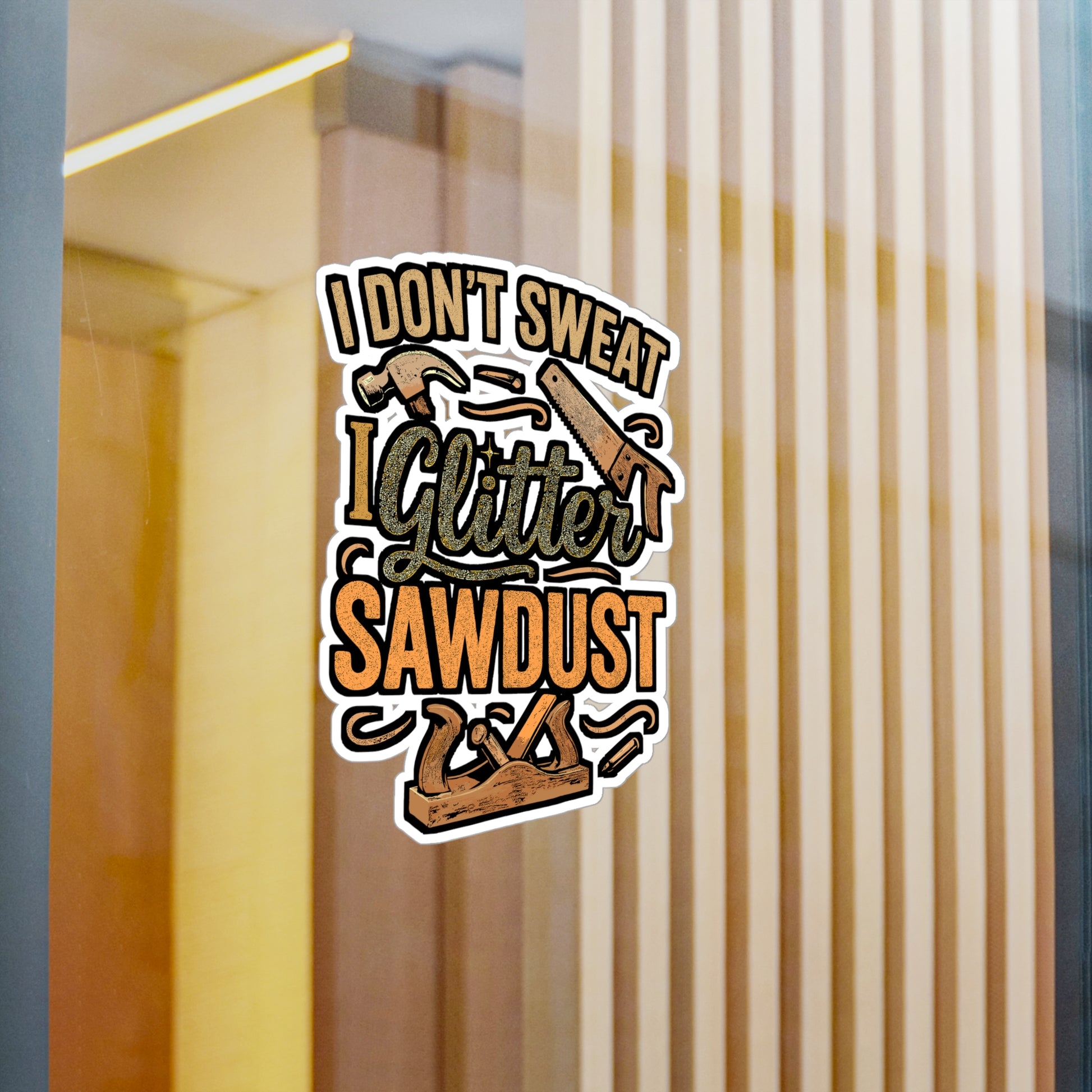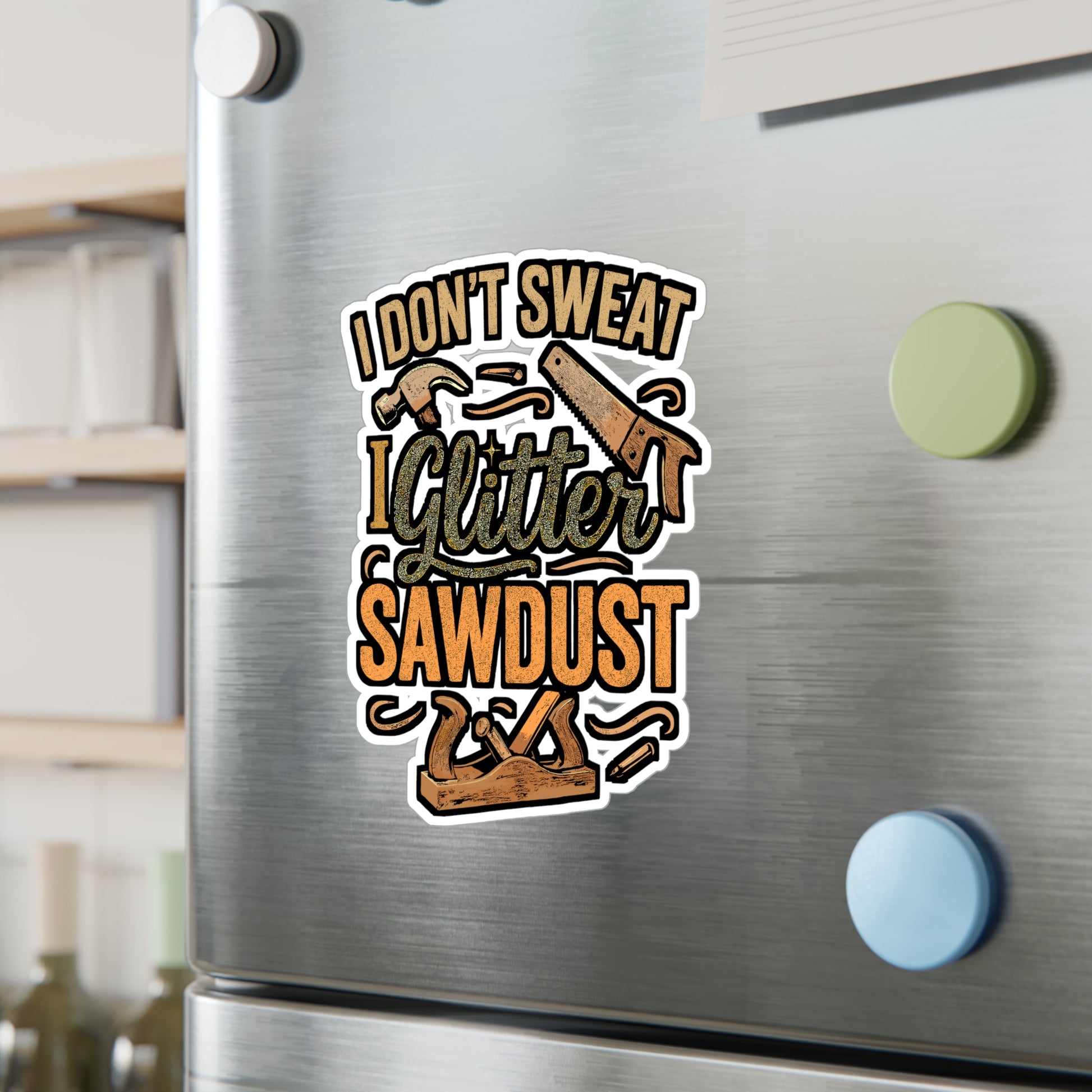 I Don't Sweat, I Glitter Sawdust – Vinyl Carpenter Sticker for Laptop or Water Bottle | Woodworker Gift, Funny Carpenter Decal