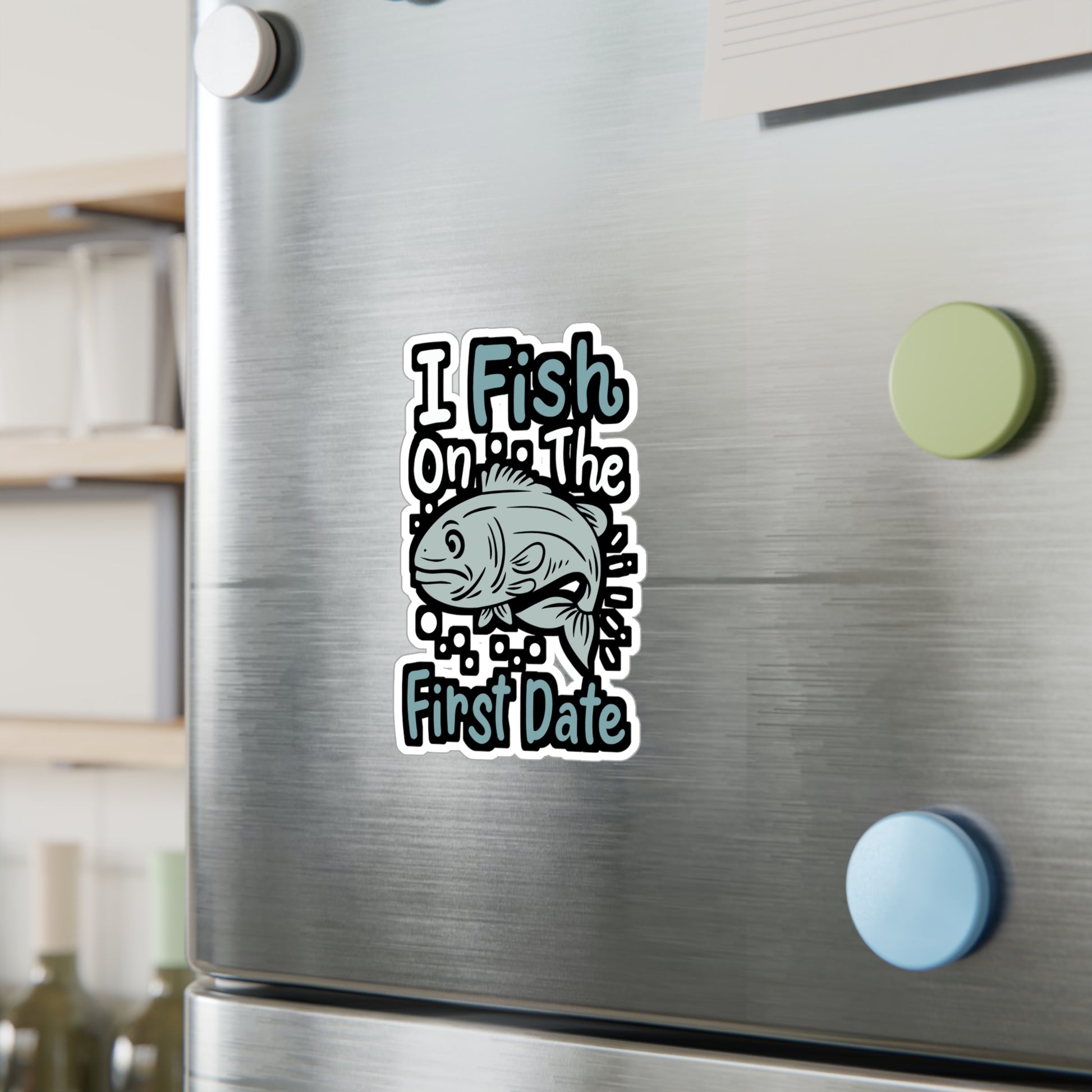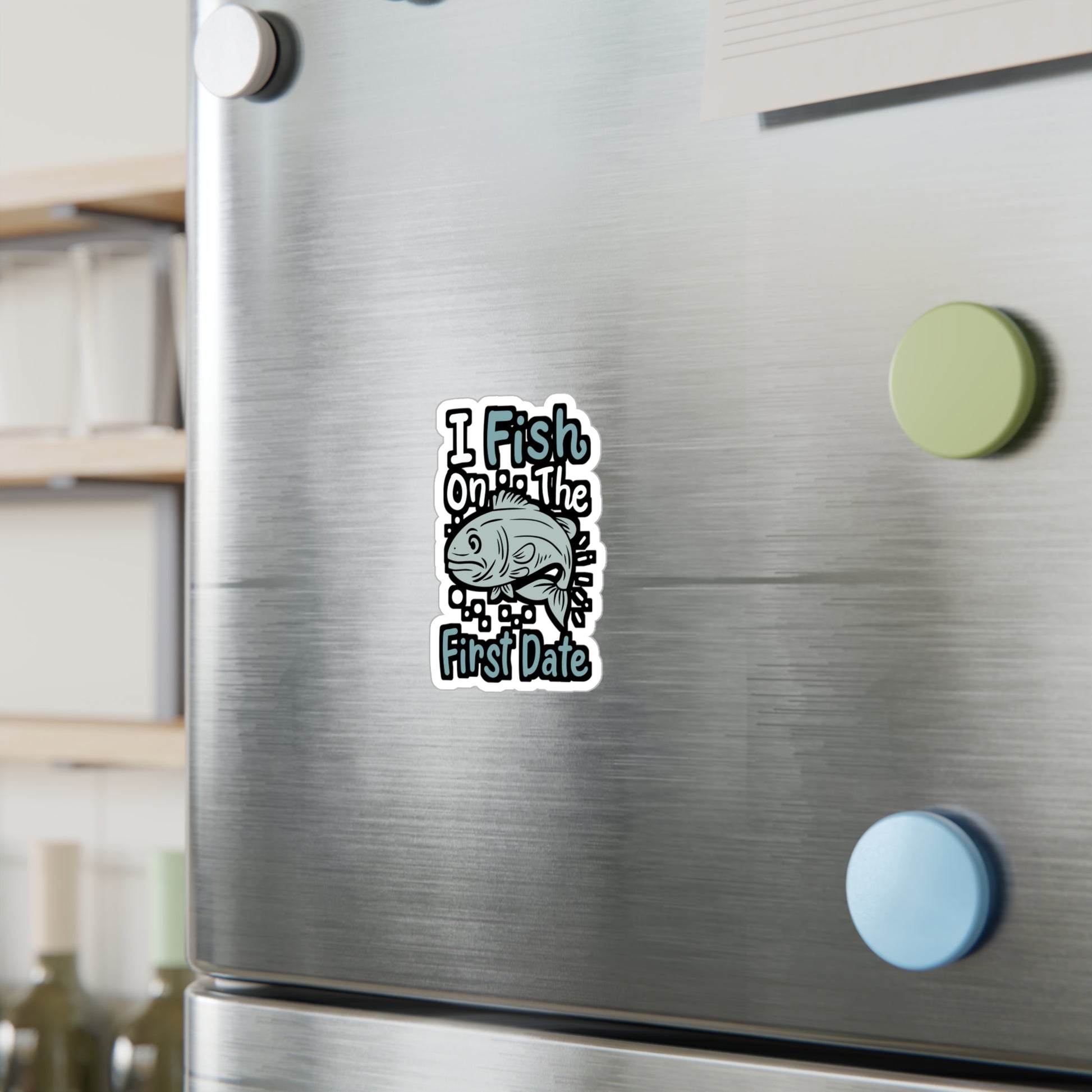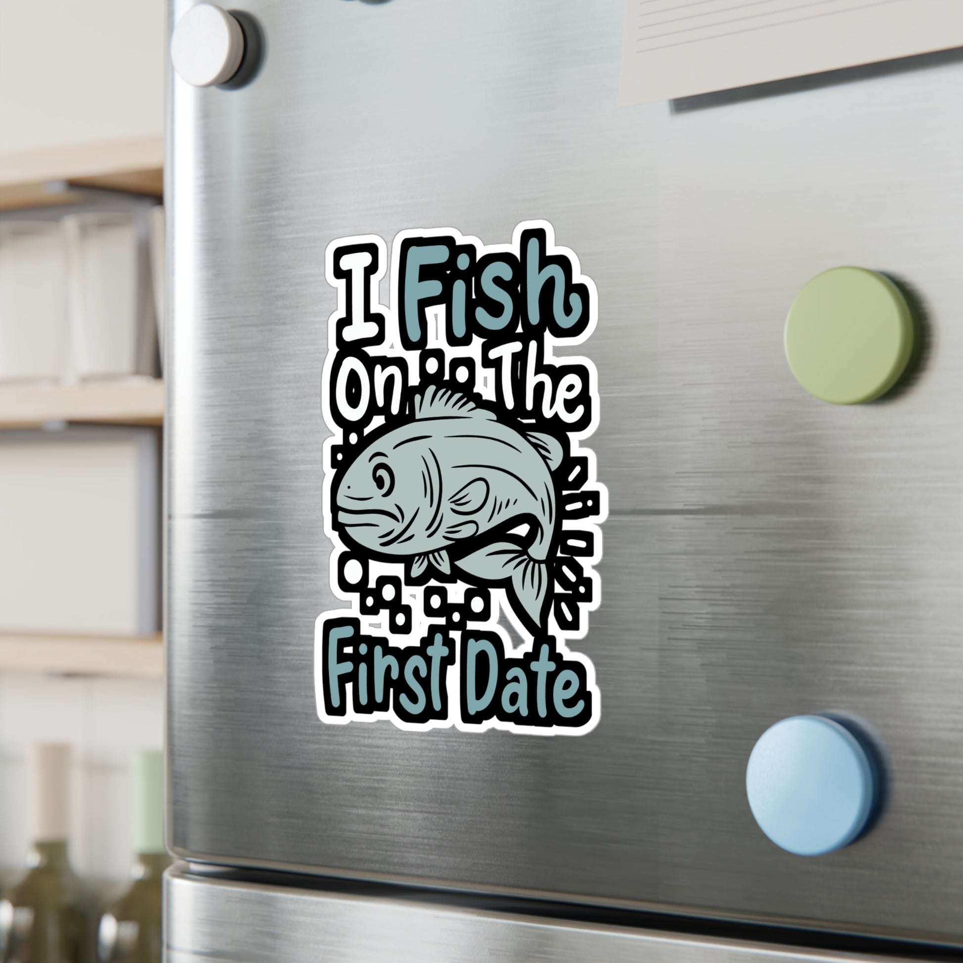 I Fish On The First Date - Fishing Sticker for Laptop Sticker. Water Bottle Sticker, Vinyl Angling Decal - Fishing Gift