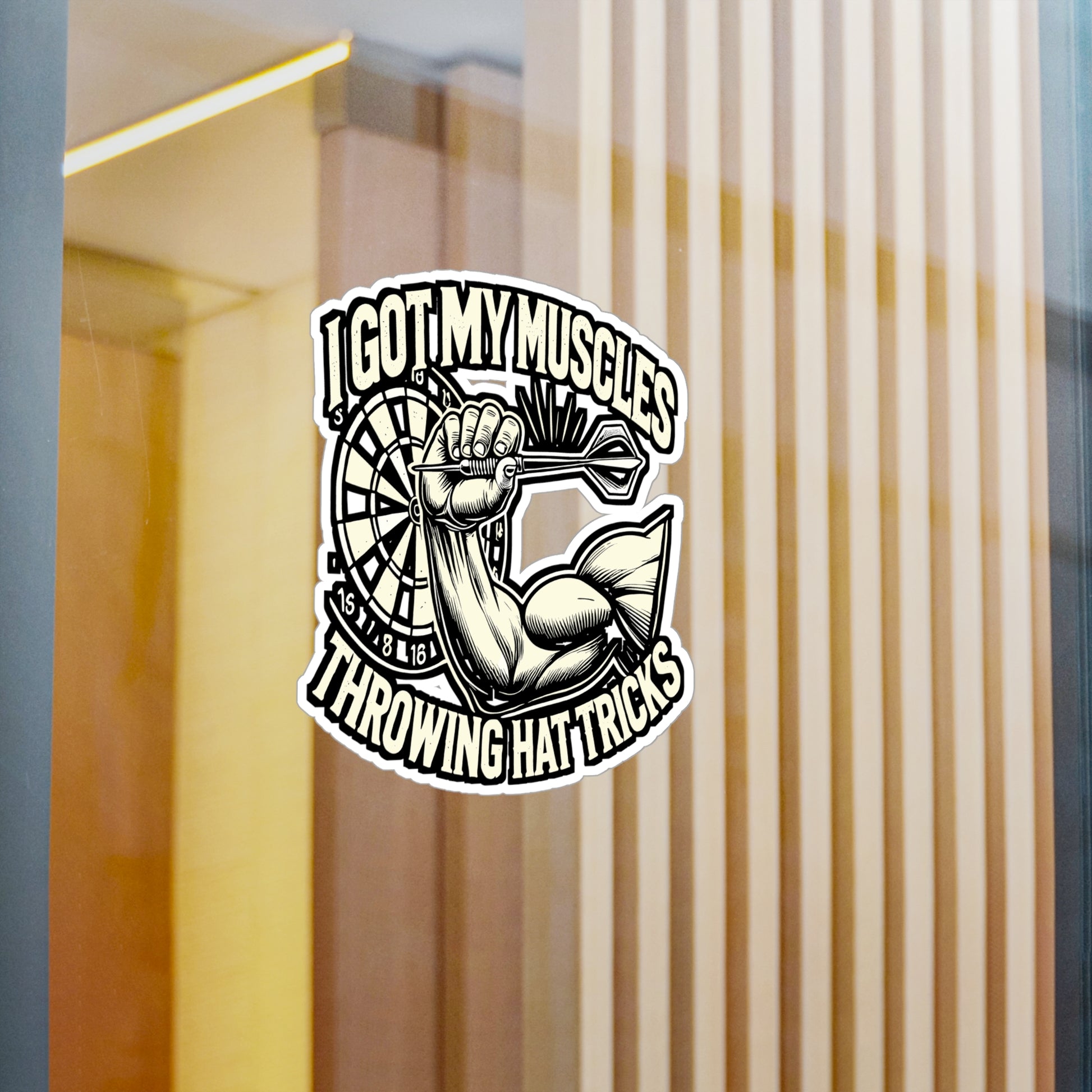 I Got These Muscles Throwing Hat Tricks – Dart Vinyl Decal for Laptop & Water Bottle | Funny Dartboard Gift for Dart Lovers