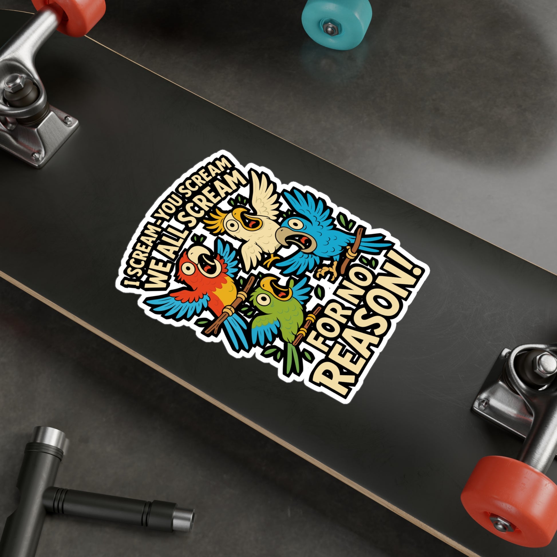 I Scream You Scream We All Scream for No Reason – Parrots Sticker, Vinyl Decal for Laptop or Water Bottle | Funny Bird Lover Gift