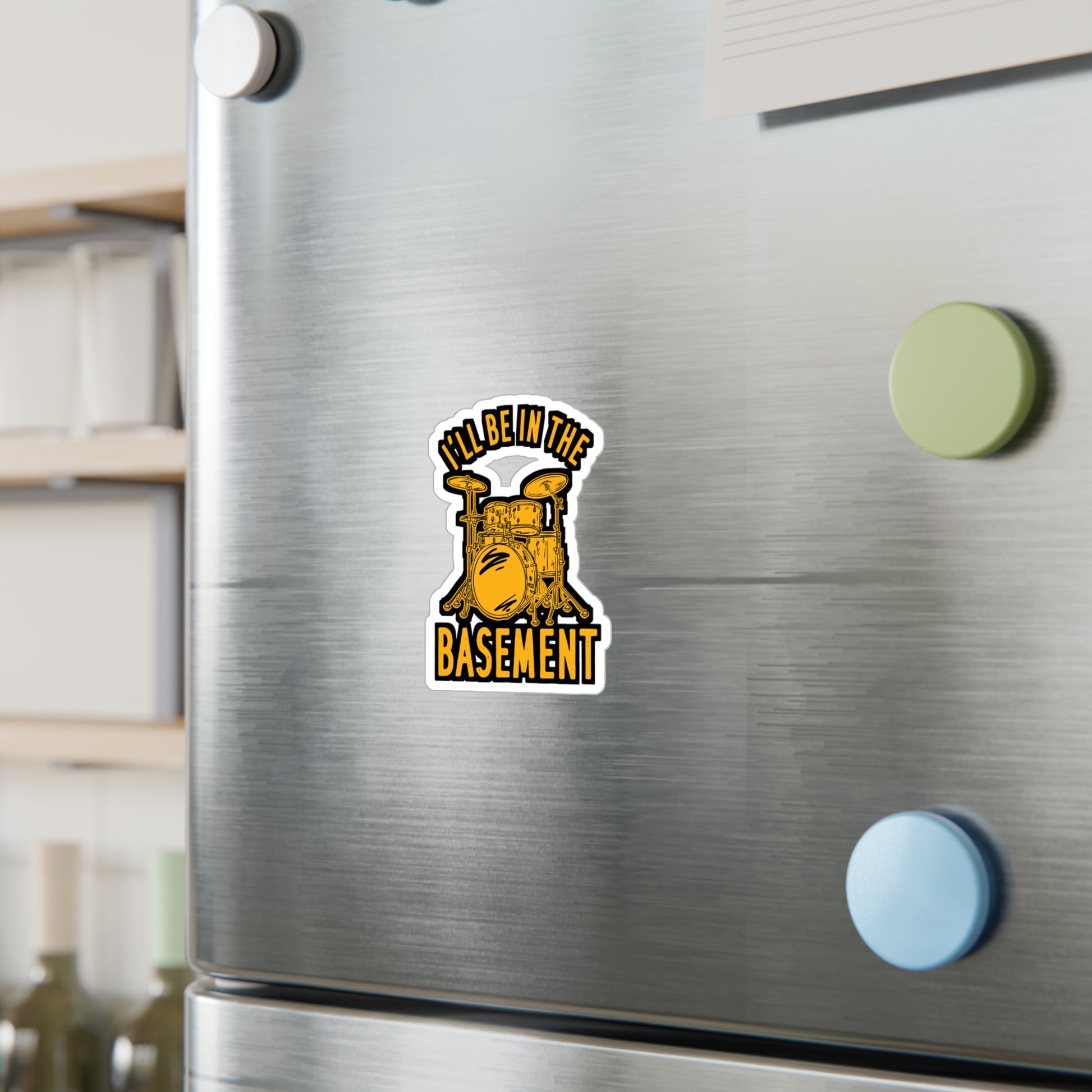 I'll Be In The Basement - Drummer Sticker for Laptop Sticker. Water Bottle Sticker, Vinyl Bass Decal - Drummer Gift