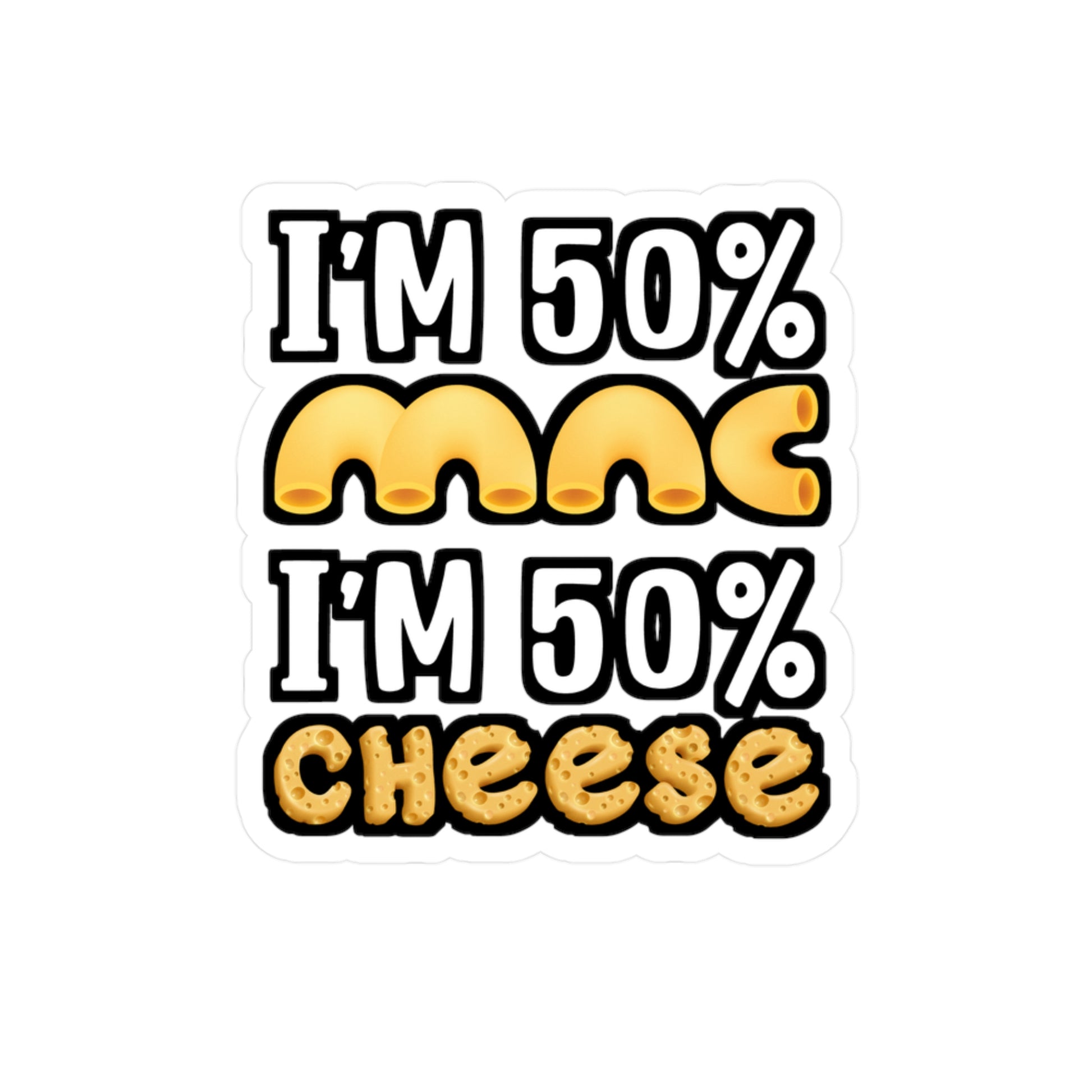 I'm 50% Mac and 50% Cheese - Macaroni Sticker for Laptop Sticker. Water Bottle Sticker, Vinyl Mac Decal - Macaroni Gift | Macaroni Sticker | Mac Decals | Macaroni Gift