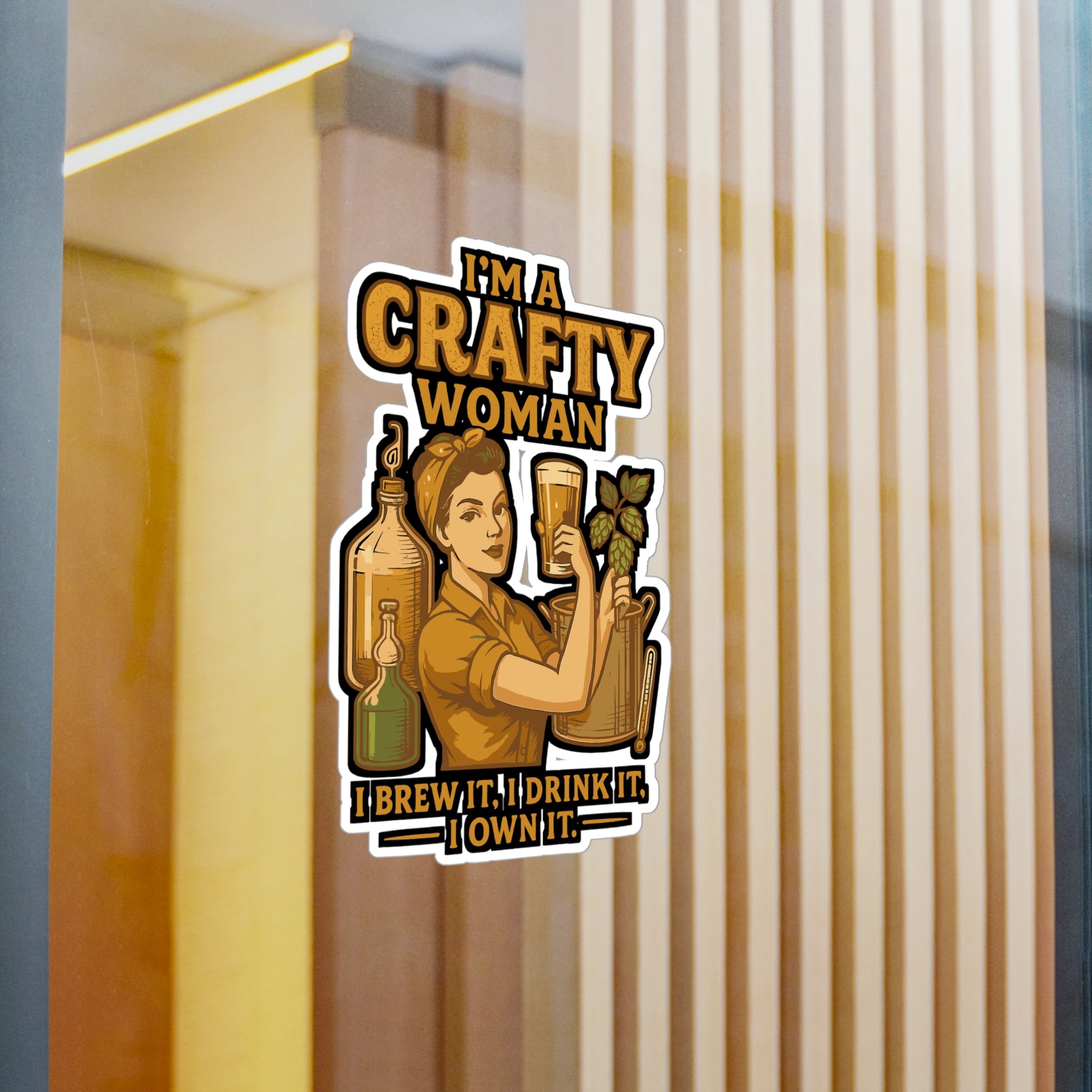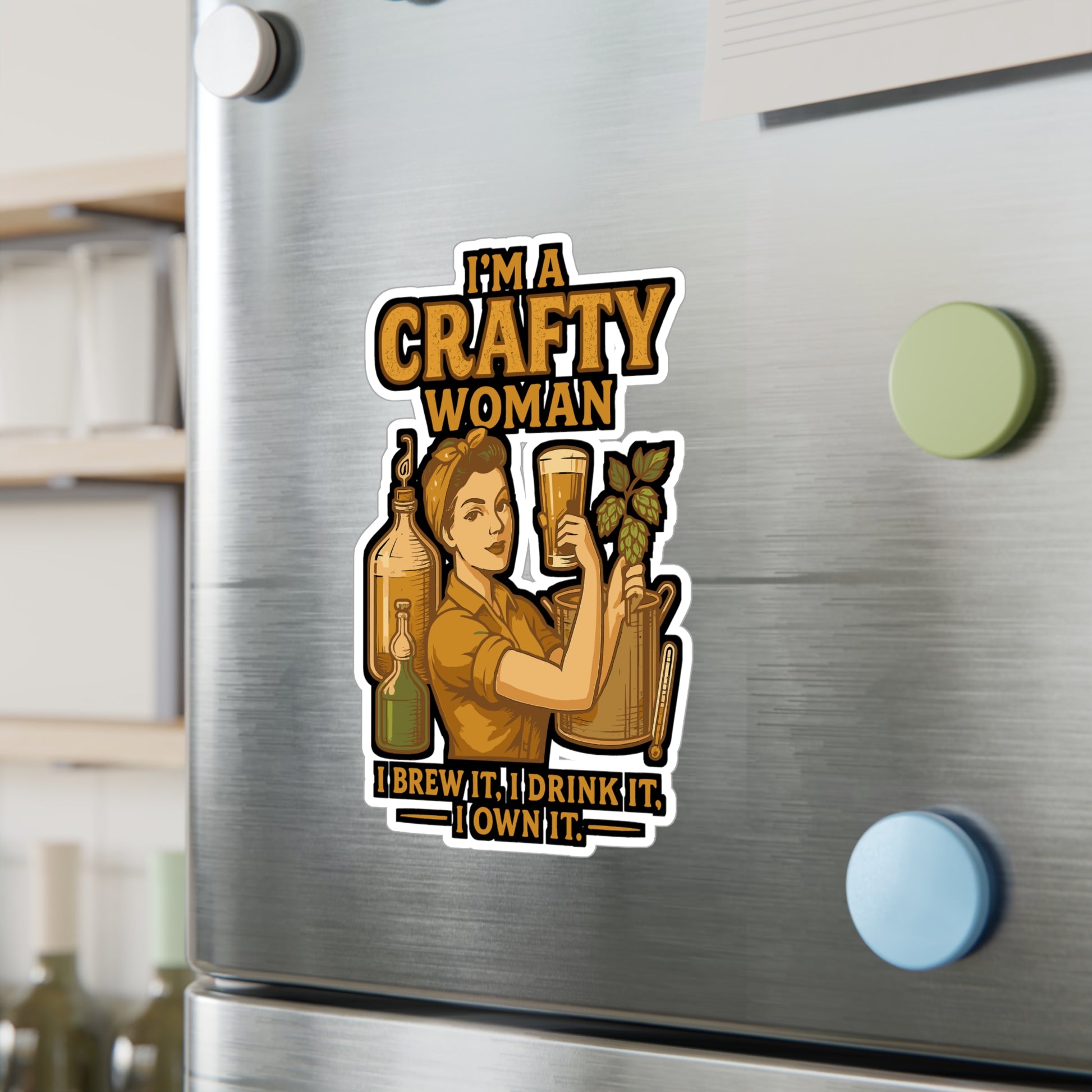 I'm A Crafty Woman - Home Brew Sticker - Waterproof Decal for Laptop, Water Bottle - Gift for Women, Crafters, Brewing Enthusiasts | Home brew Sticker | Craft beer Decals | Home brew Gift