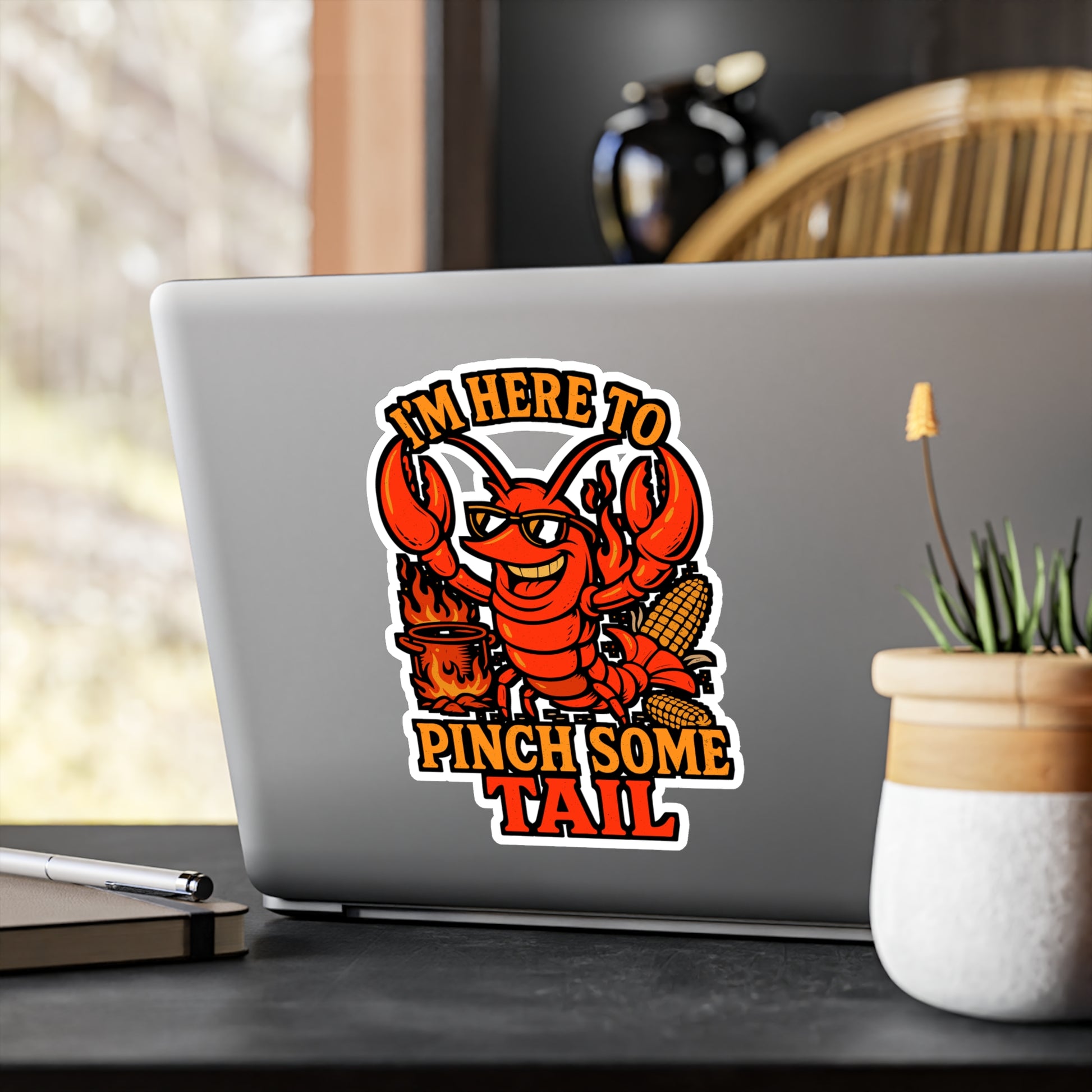 I'm Here To Pinch Some Tail – Crawfish Sticker for Laptop, Water Bottle or Cooler | Funny Cajun Seafood Boil Gift
