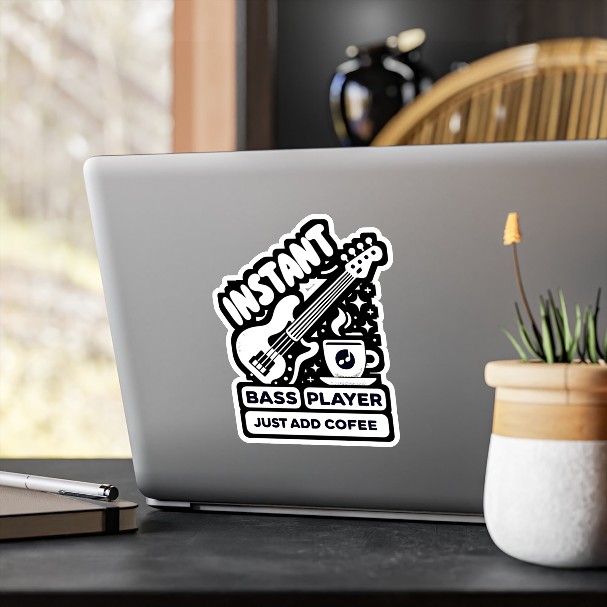 Instant Bass Player Just Add Coffee - Relax Sticker for Laptop Sticker. Water Bottle Sticker, Vinyl Bass player Decal - Relax Gift
