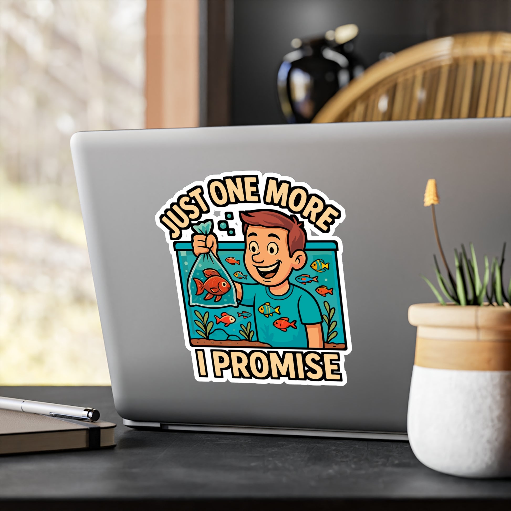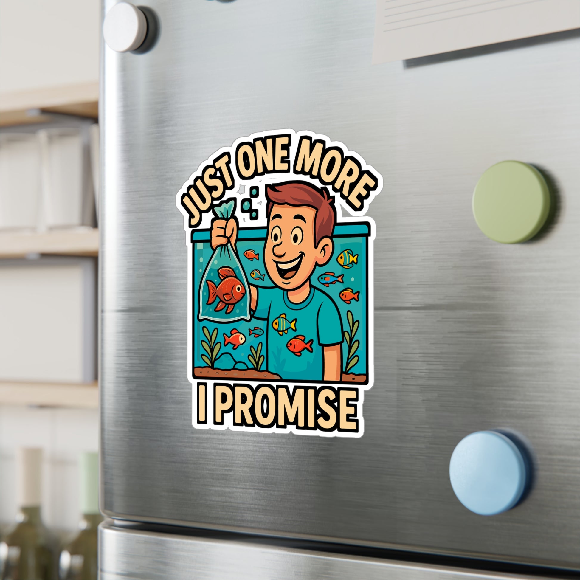 Just One More Fish I Promise – Aquarist Sticker for Laptop or Water Bottle | Vinyl Aquascaping Decal, Aquarium Lover Gift
