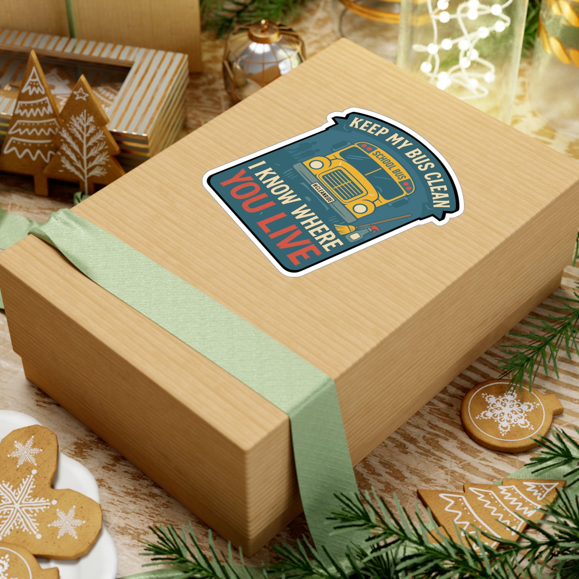 Keep My Bus Clean - I Know Where You Live - Schoolbus Driver Sticker for Laptop, Water Bottle, Gift for Bus Drivers