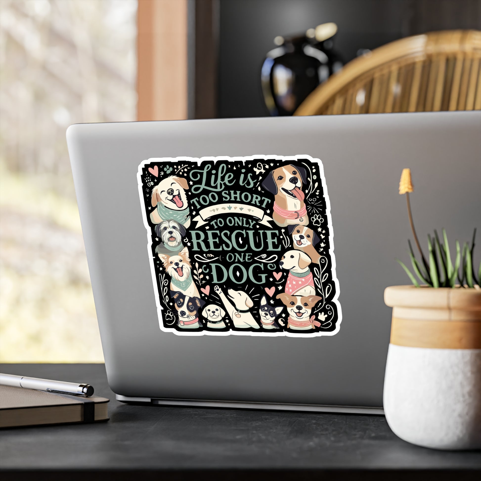 Life Is Too Short To Only Rescue One Dog - Dog rescue Sticker for Laptop Sticker. Water Bottle Sticker, Vinyl Adopt dogs Decal - Dog rescue Gift | Dog rescue Sticker | Adopt dogs Decals | Dog rescue Gift