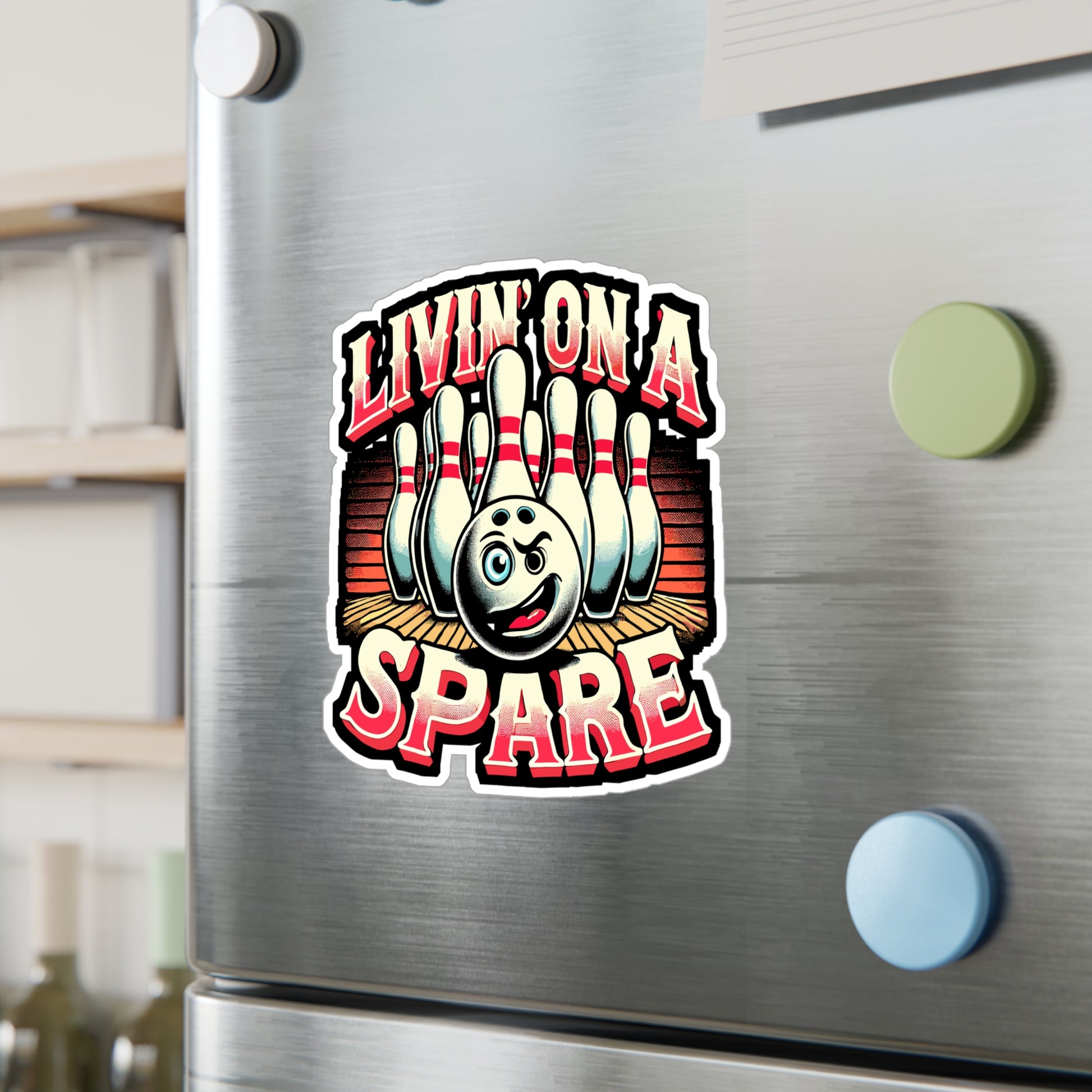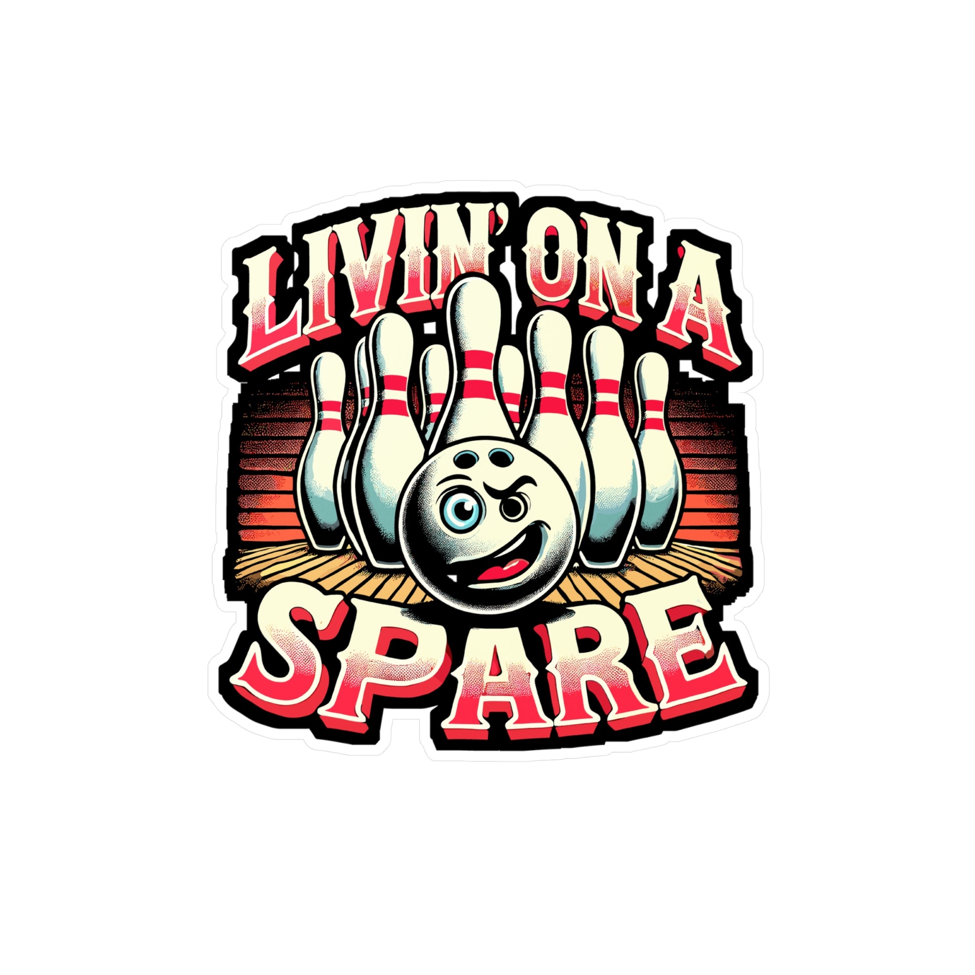 Show off your love for bowling with this 'Livin’ on a Spare' Sticker. Perfect for bowlers and anyone who enjoys the thrill of the game. With a humorous twist, this design celebrates the excitement of getting a spare! Ideal for sports fans and bowling enthusiasts.