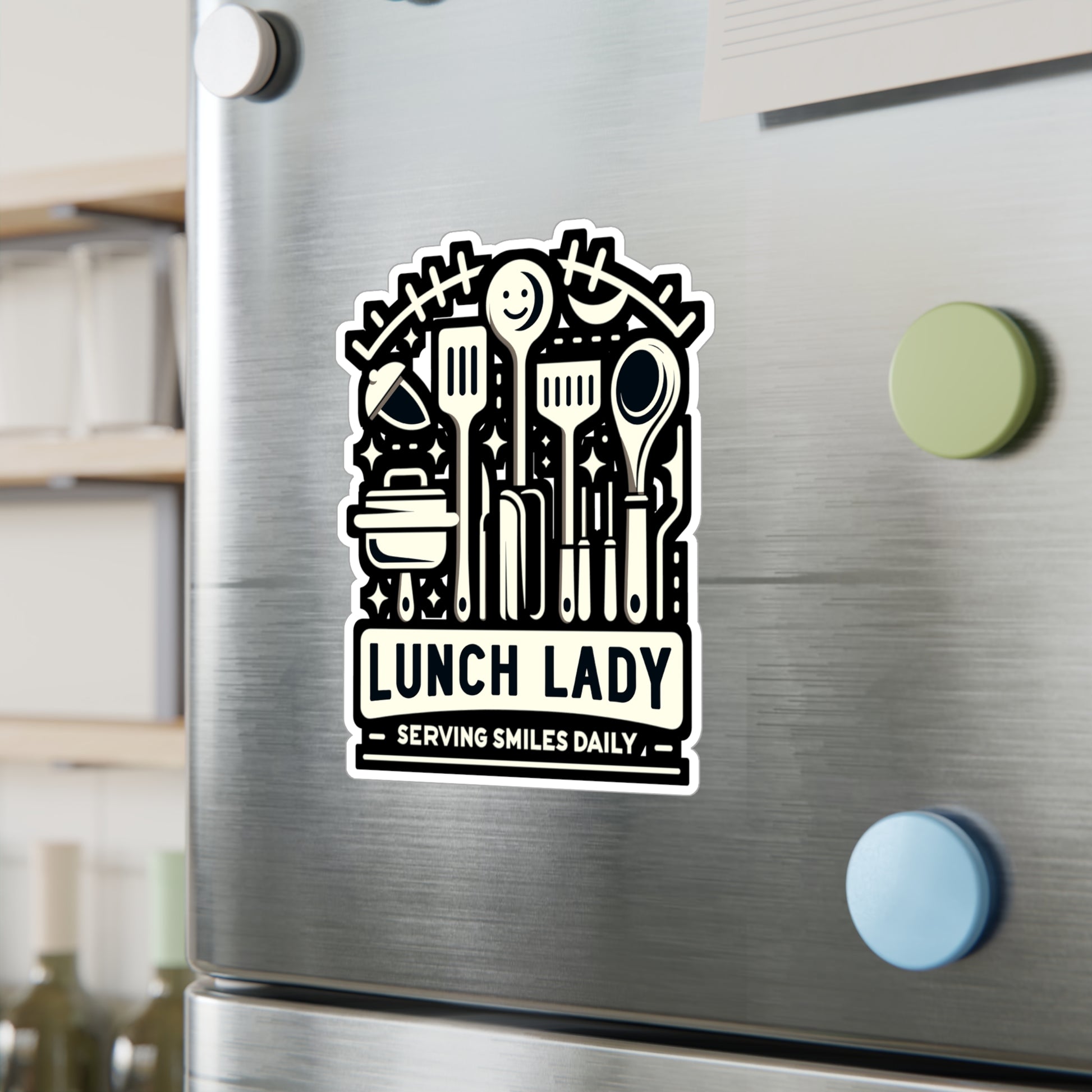 Lunch Lady Serving smiles daily - Lunch lady Sticker for Laptop Sticker. Water Bottle Sticker, Vinyl Lunch Decal - Lunch lady Gift | Lunch lady Sticker | Lunch Decals | Lunch lady Gift