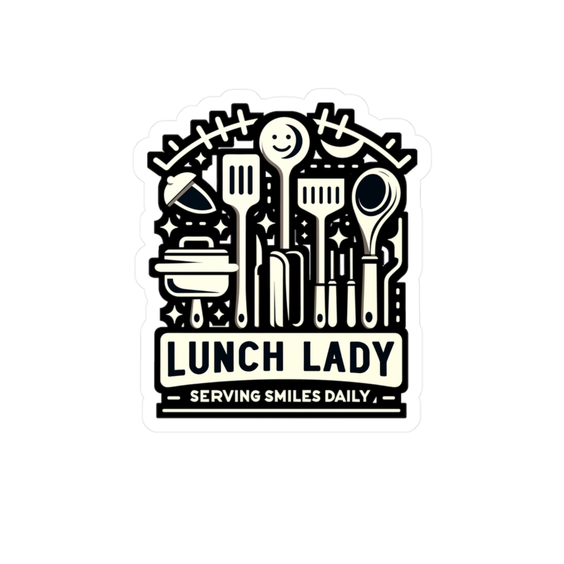 Lunch Lady Serving smiles daily - Lunch lady Sticker for Window Laptop Sticker. Water Bottle Sticker, Vinyl Lunch Decal - Lunch lady Gift