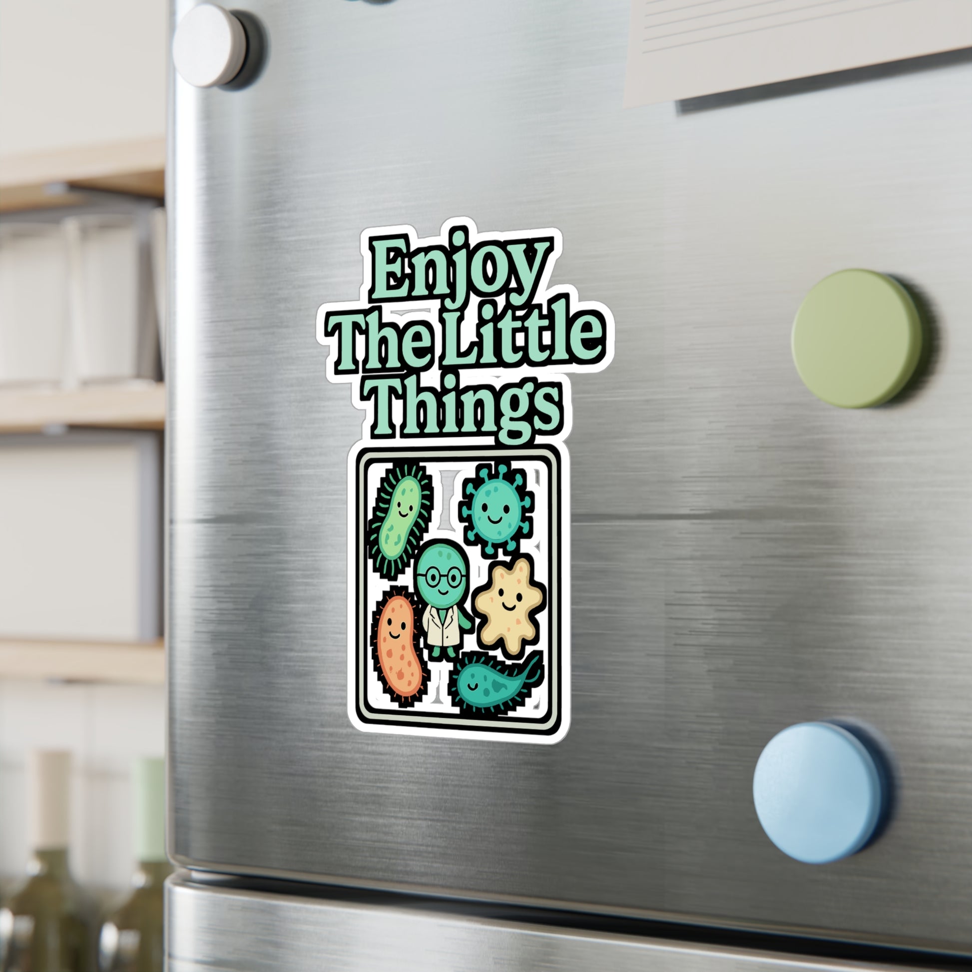 Microbiology Sticker – Enjoy The Little Things Bacteria Culture Decals, Petri-Dish Science Vinyl, Waterproof for Laptop, Water Bottle