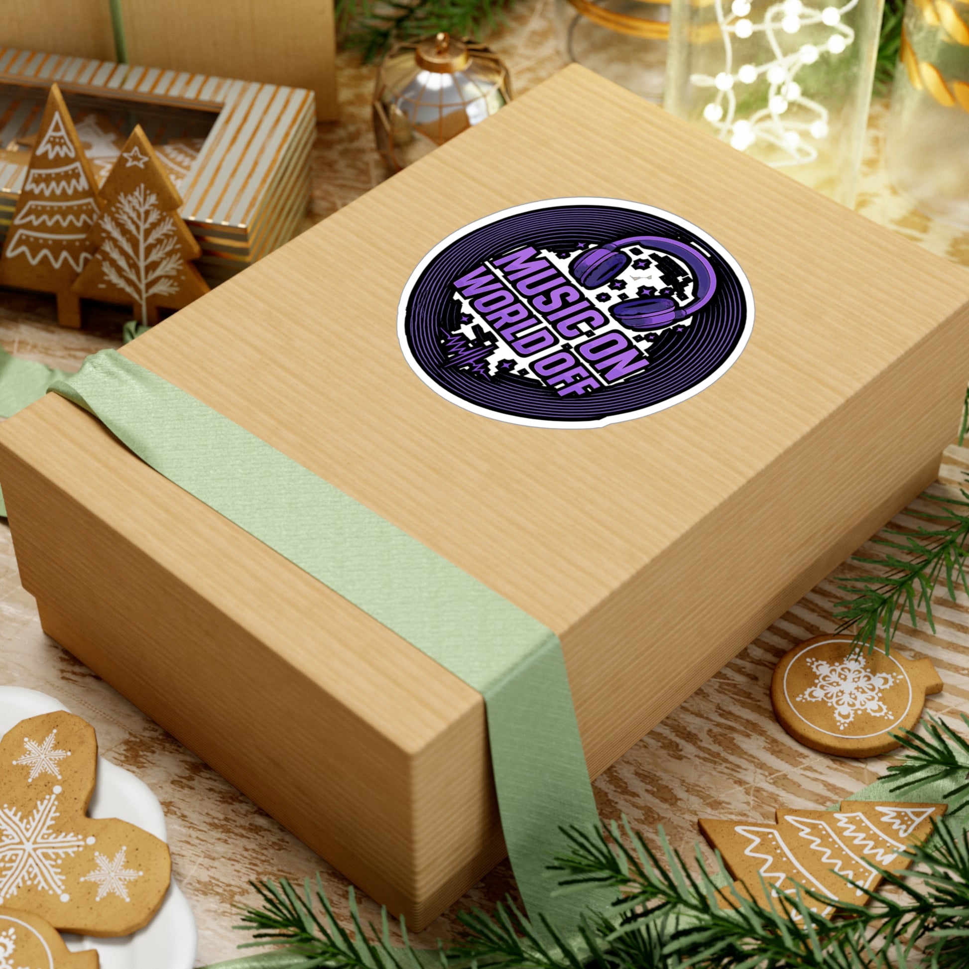 Music Sticker "Music On World Off" Decals – DJ Turntable Design, Waterproof Vinyl for Laptop, Water Bottle, Music Lovers Gift | Music Sticker | Dj Decals | Music Gift