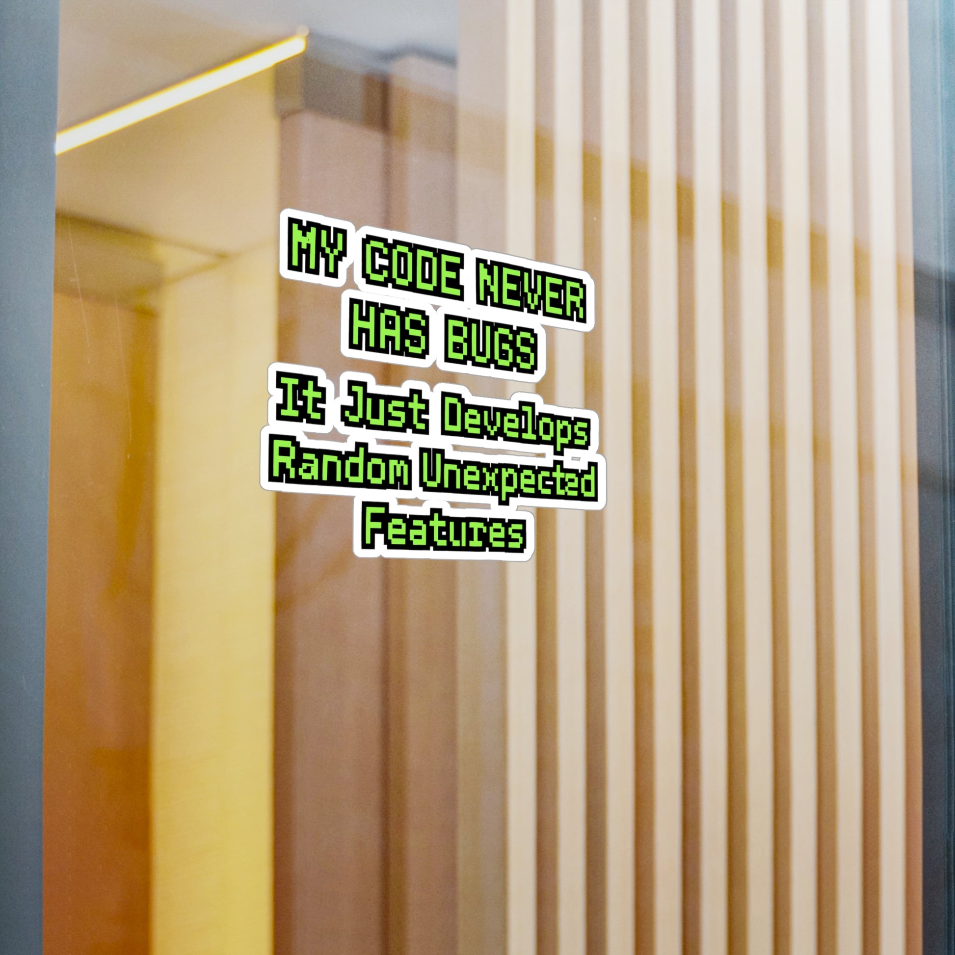 My Code Never Has Bugs – Funny Programmer Sticker for Laptop or Water Bottle | QA Developer Gift Decal