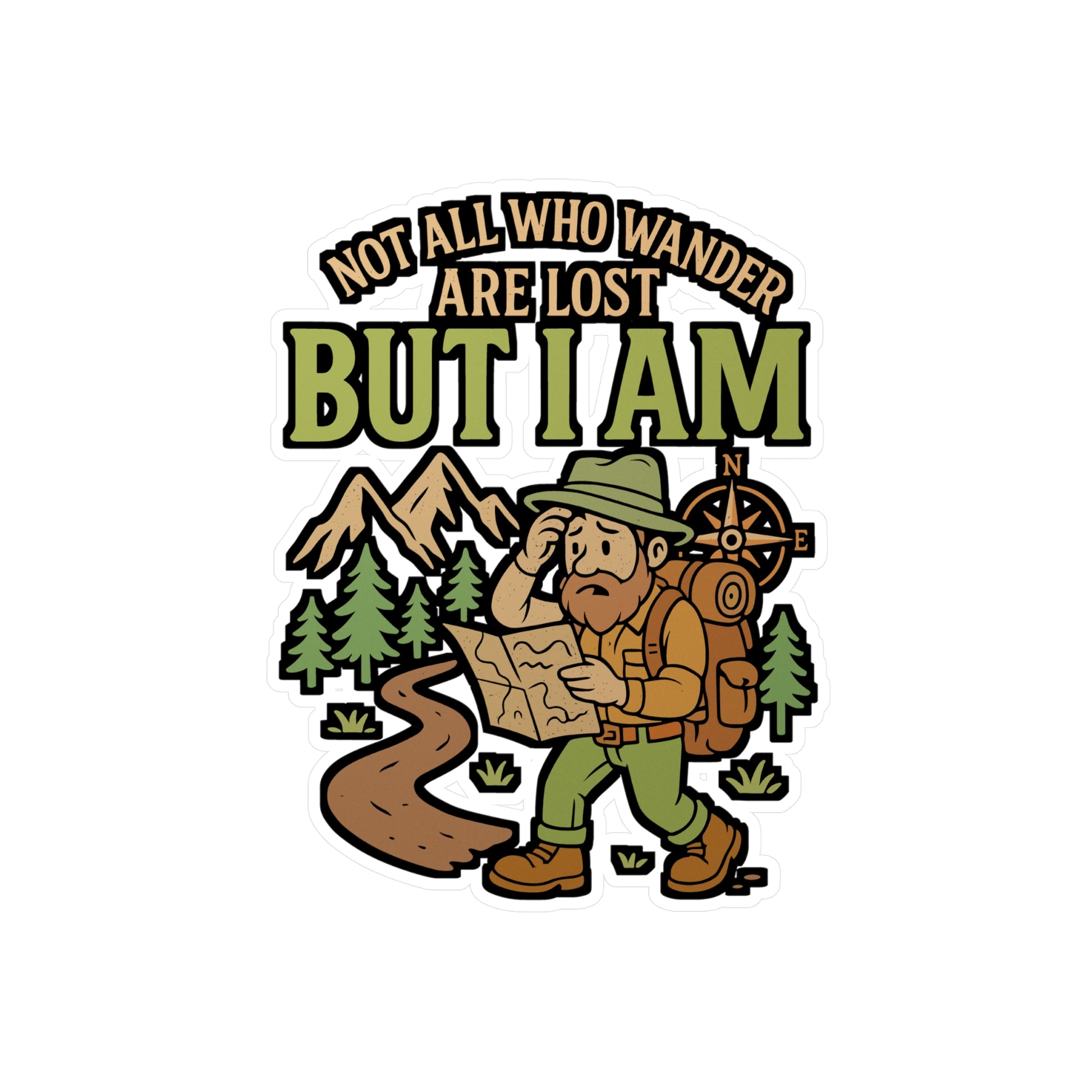 Not All Who Wander Are Lost, But I Am – Hiking Sticker for Laptop or Water Bottle | Funny Outdoor Adventure Gift