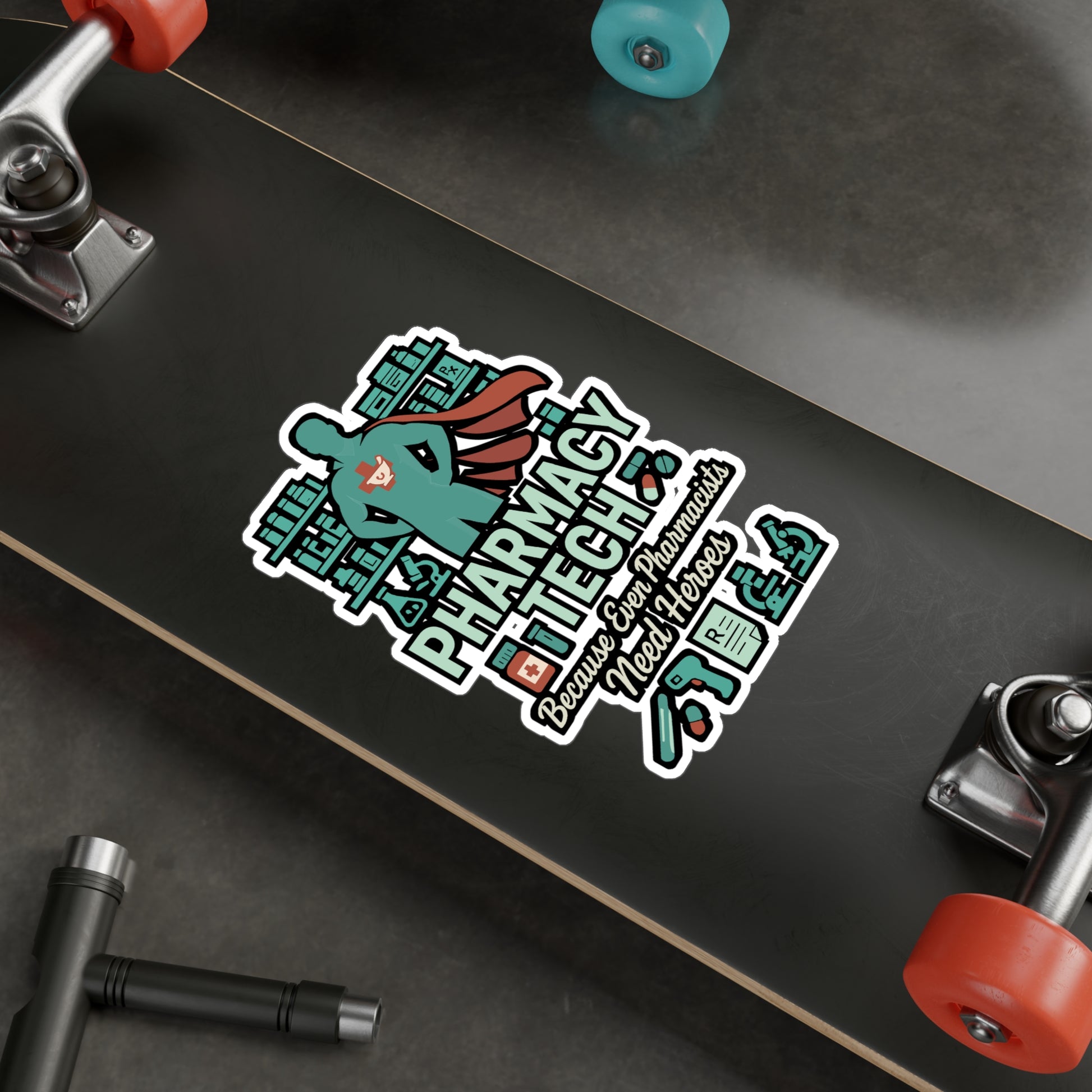 Pharmacy Tech Because Even Pharmacists Need Heroes - Pharmacy Sticker for Laptop, Water Bottle - Gift for Pharmacy Technicians, Coworkers
