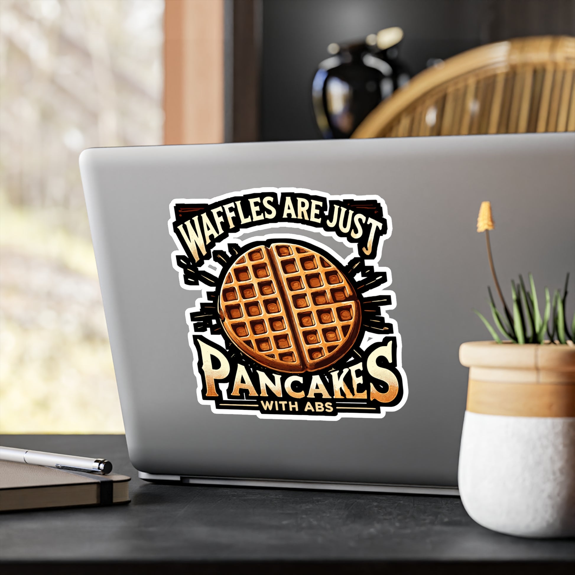 Waffles Are Just Pancakes With Abs - Waffle Sticker for Laptop Sticker. Water Bottle Sticker, Vinyl Pancake Decal - Waffle Gift | Waffle Sticker | Pancake Decals | Waffle Gift