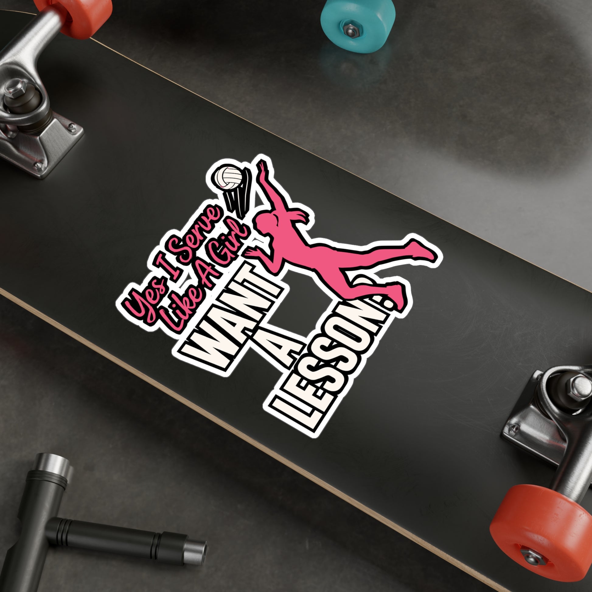 Yes I Serve Like A Girl Want A Lesson? - Volleyball Sticker for Laptop, Water Bottle - Gift for Volleyball Players, Girls & Teens