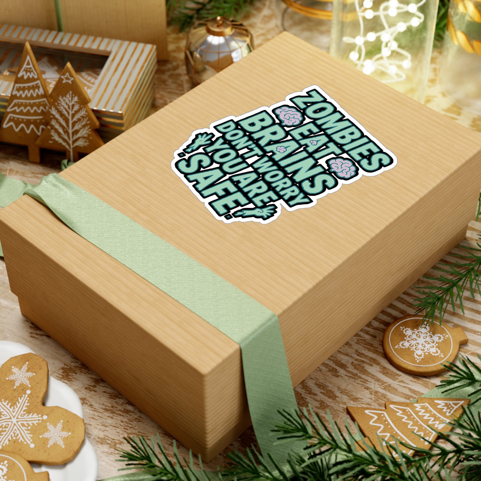Zombie Sticker Decals – "Zombies Eat Brains Don't Worry You Are Safe" – Vinyl Waterproof Apocalypse Undead Brains for Laptop, Water Bottle | Zombie Sticker | Apocalypse Decals | Zombie Gift